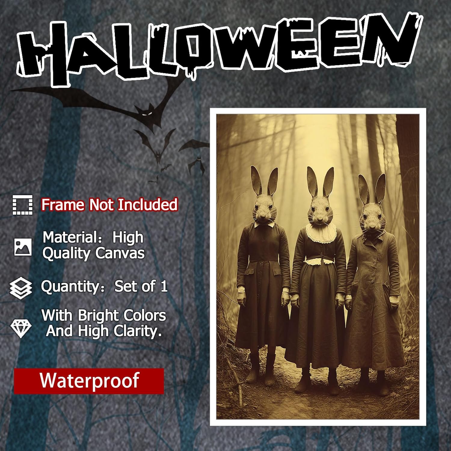 Vintage Halloween Wall Decor Rabbit Cult of the Occult Forest Canvas Wall Art Poster Gothic Dark Academia Decorations Room Creepy Print Spooky Pictures 24X36inch Unframed