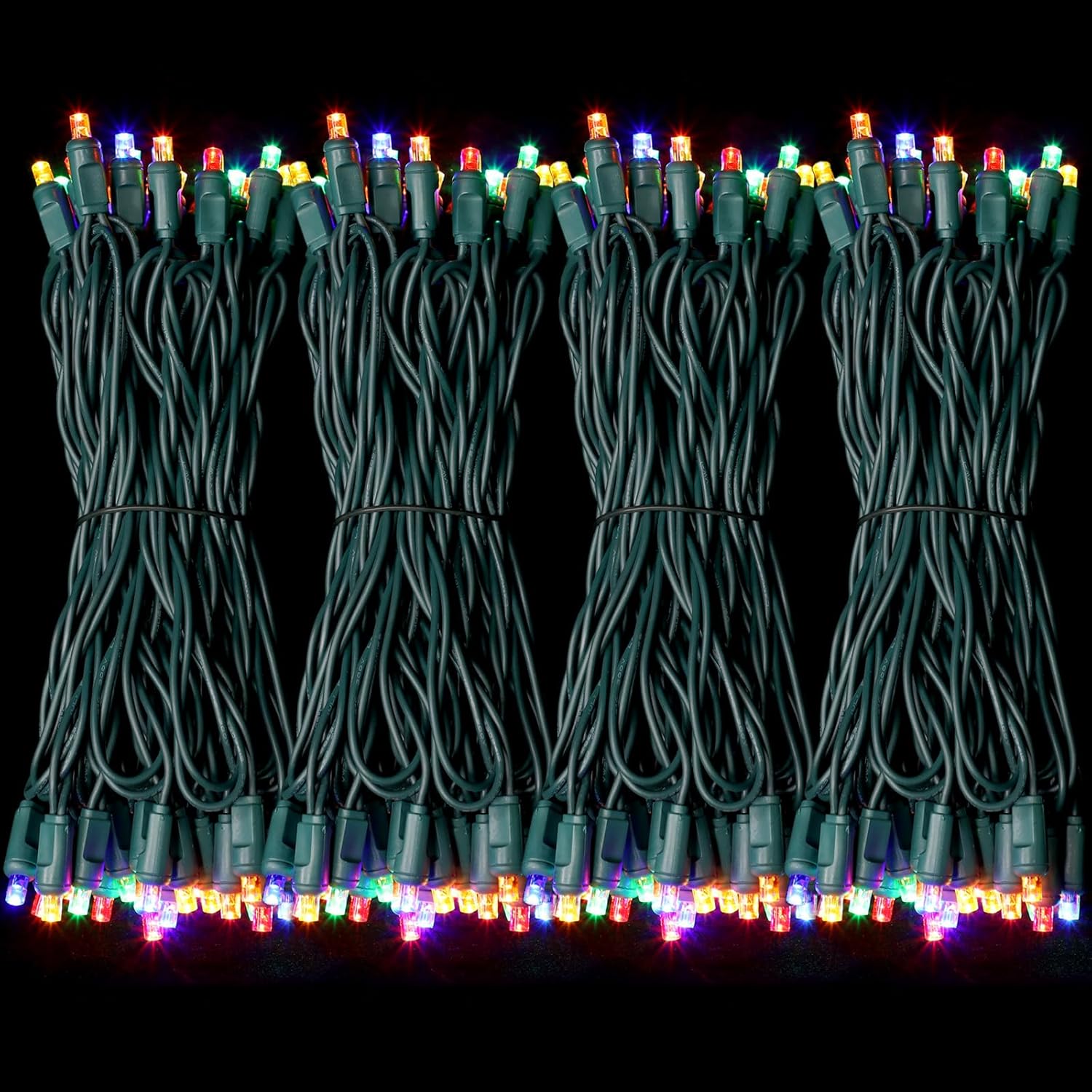200LED (4pk of 50L) String Lights, LED Christmas Lights, 6" SPACING,Green Wire,Multicolour