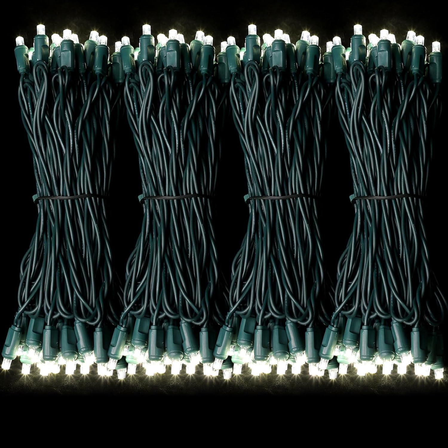 - One-Piece 5MM Commercial Decoration LIGHTS : 600ft 1200 LED Lights (50 Lights 25ft X24Groups), 6-inch spacing. Green wires have a wide range of uses and are perfectly integrated with green plants or shrubs.no extra adapter is needed,bulbs are cool to touch,with the rectifier,keep the light steady (not twinkle).