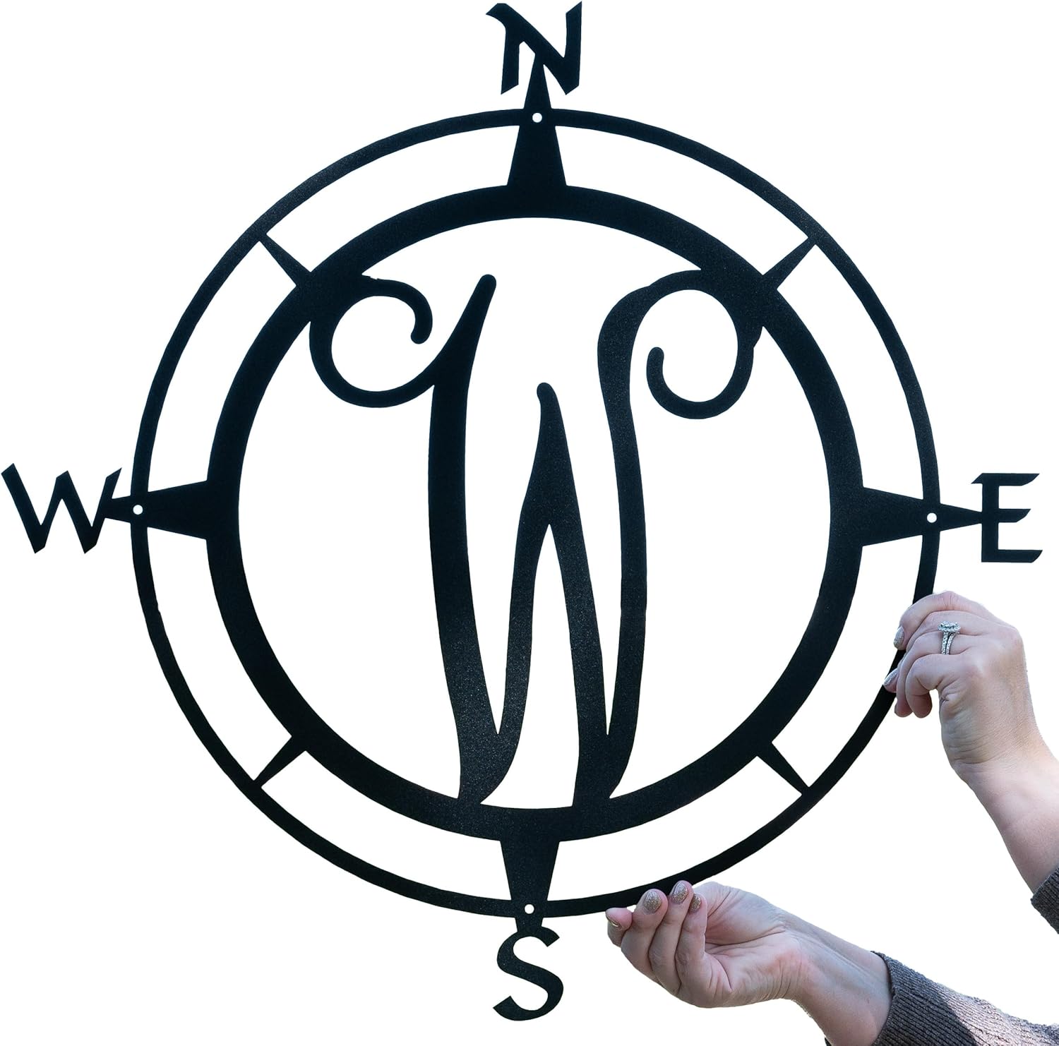 Metal Compass Letter Monogram | Wall Monogram Sign | Nautical Decor | Rustic Compass letter Decor | Wedding Gift, Steel Compass