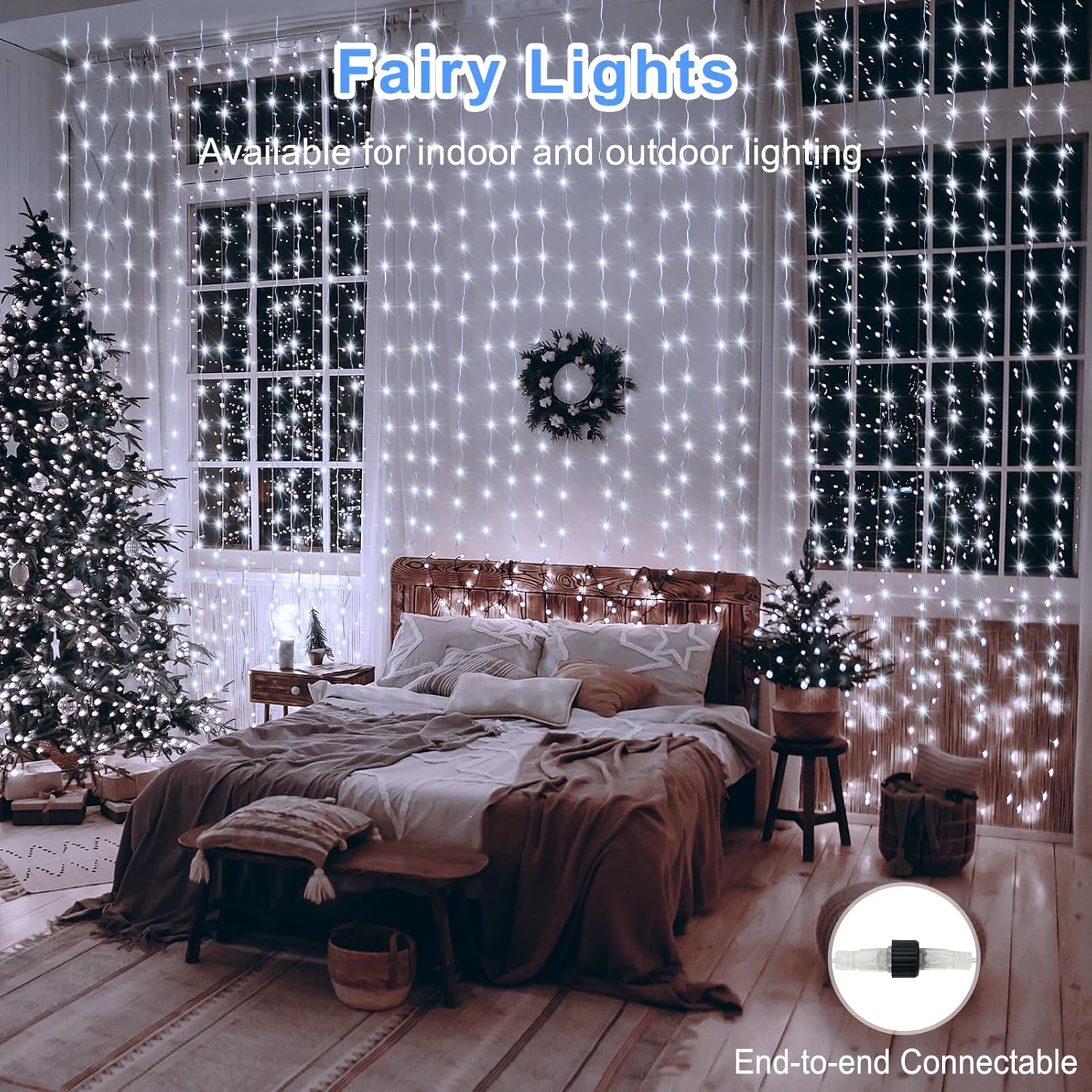 - Connectable Curtain Lights: this curtain lights allow you to connect up to 3 sets end to end, giving you the flexibility to create a larger and more impressive light display. Perfect for adding a touch of magic to your Christmas, Halloween, Thanksgiving, wedding, holiday party, or home decorations