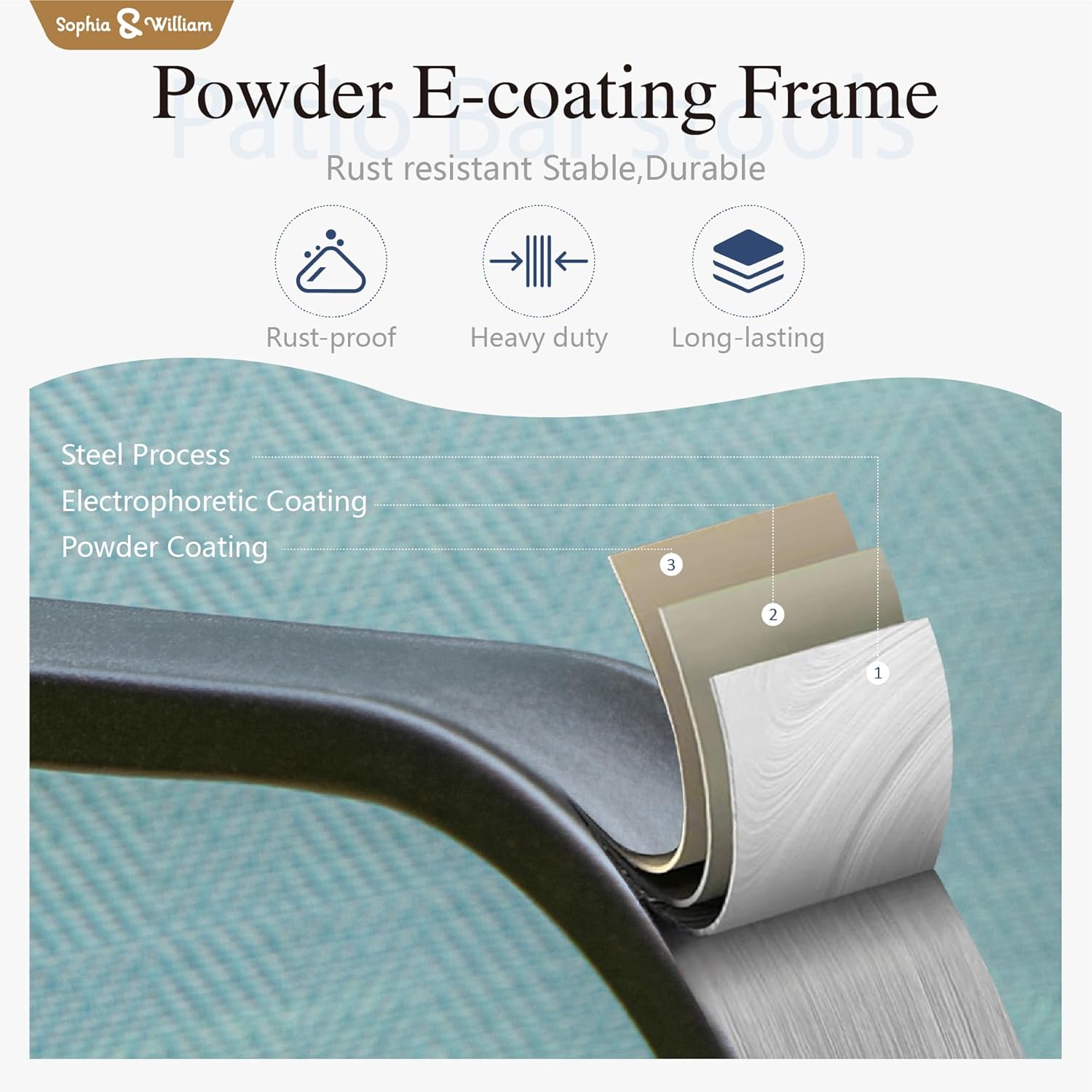- 【Built to Last】Crafted for lasting enjoyment, this patio set boasts a sturdy construction and weatherresistant ecoating technology that stand up to the elements. Easy to clean and maintain