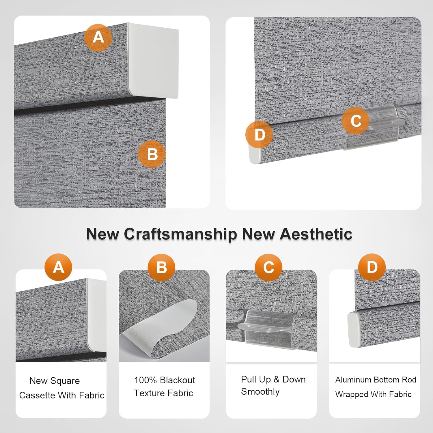 - [COLOR UNITY]: Our Roller blinds use the new valance, it is wrapped in fabric of the same color as the shade as well as the lower rod, the shades uniform in color and makes the room more harmonious and beautiful. This cordless shades made of blackout jacquard fabric which can filter light, protect UV rays and heat insulation.In addition, instead of plastic brackets, our upgraded metal brackets are more durable and make the fabric closer to the window so as to ensure a better shading.