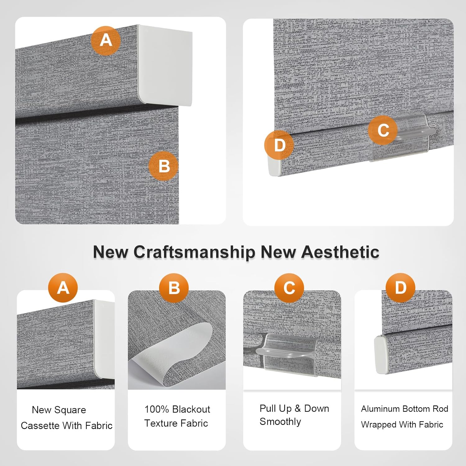 - [COLOR UNITY]: Our Roller blinds use the new valance, it is wrapped in fabric of the same color as the shade as well as the lower rod, the shades uniform in color and makes the room more harmonious and beautiful. This cordless shades made of blackout jacquard fabric which can filter light, protect UV rays and heat insulation.In addition, instead of plastic brackets, our upgraded metal brackets are more durable and make the fabric closer to the window so as to ensure a better shading.