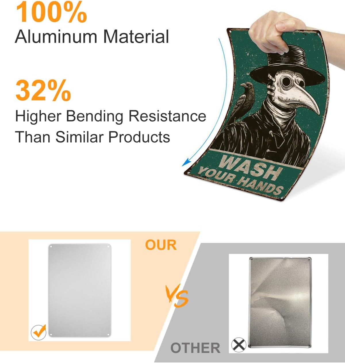 - 【Constructed from 100% Aluminum】With four pre-drilled holes in the rounded corners, it's easy to hang on walls or other surfaces, allowing for versatile indoor and outdoor display.