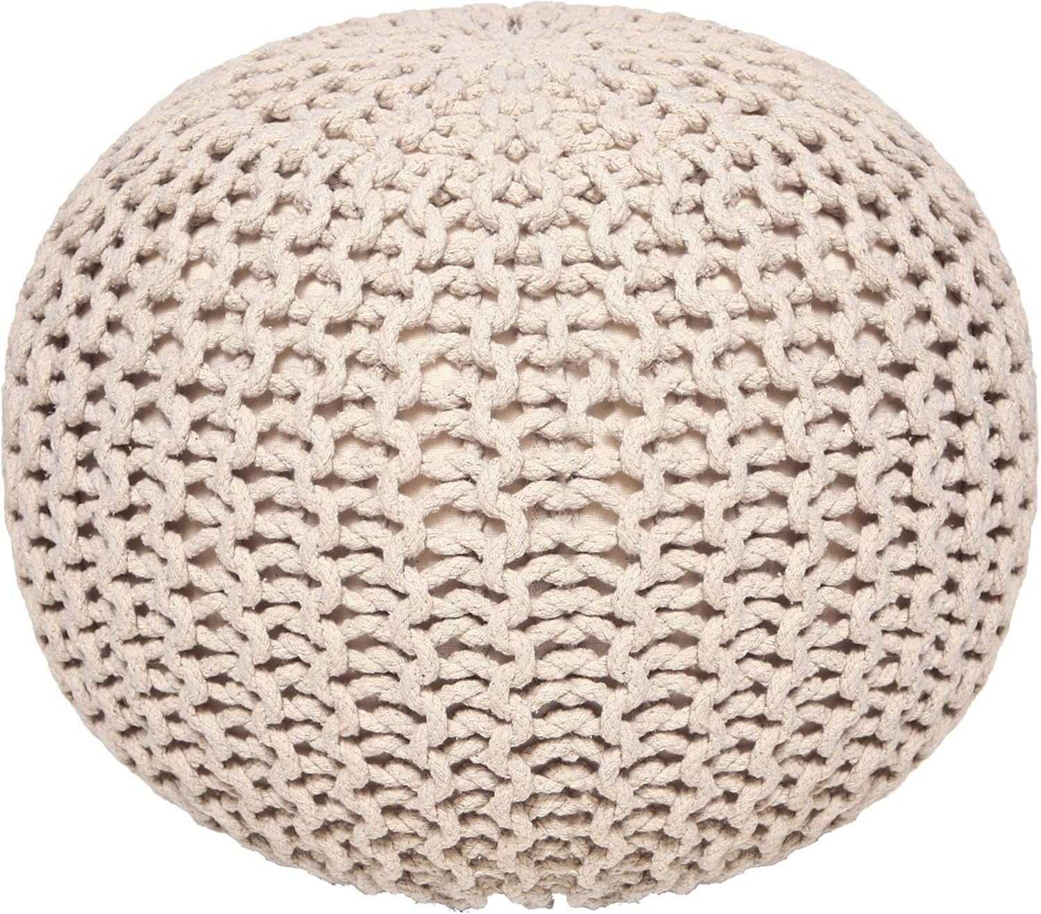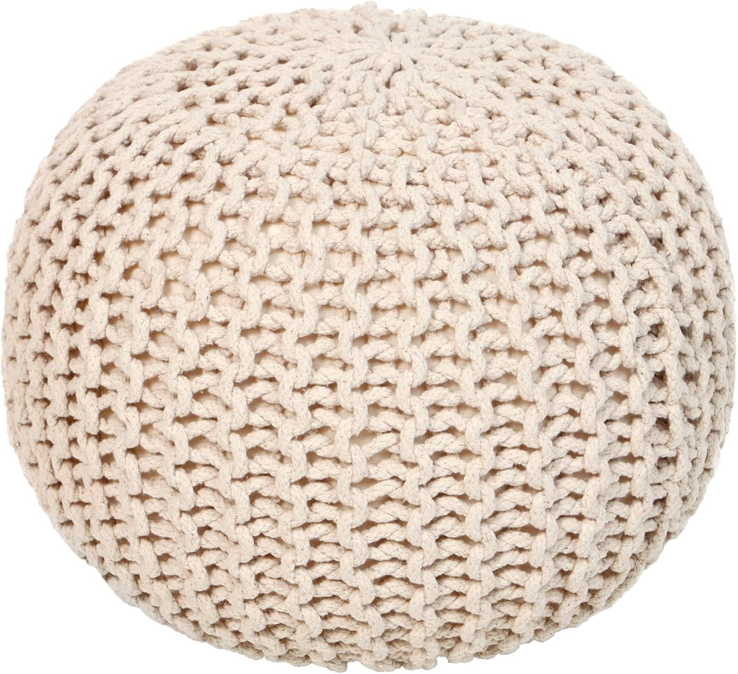 - MAKES A LOVELY, THOUGHTFUL GIFT IDEA: Our knit braided accent cord pouf ottoman is a gift that will keep on giving for many years to come. Surprise a friend or family member with one for a housewarming party, birthday, holiday, and other special occasions. Mix and match for a fun pop of color or choose one that best matches your décor and aesthetic.