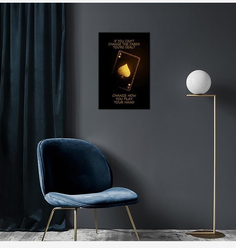 Poker Inspirational Wall Art Ace of Spades Game Motivational Poster Quotes Wall Decor for Living Room Bedroom Office Bathroom Canvas Print sign Framed Art Decoration Ready to Hang [12''Wx 18''H]