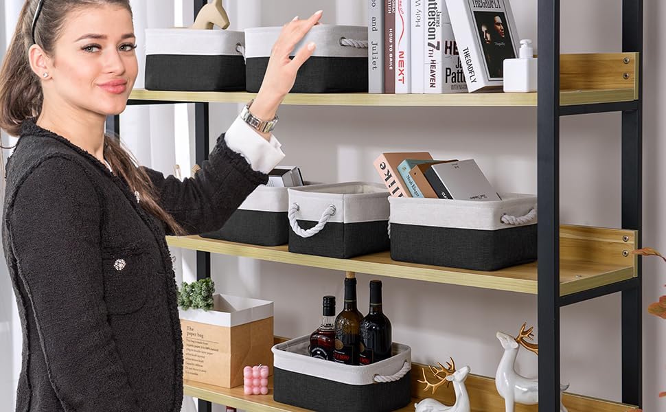 TheWarmHome Storage Bins for Shelves - 12x8x5.2 inch 1 Pack Storage Baskets for Gifts Empty for Closet Organizing Dog Gift Cloth Toy Cubes Box (White & Black)