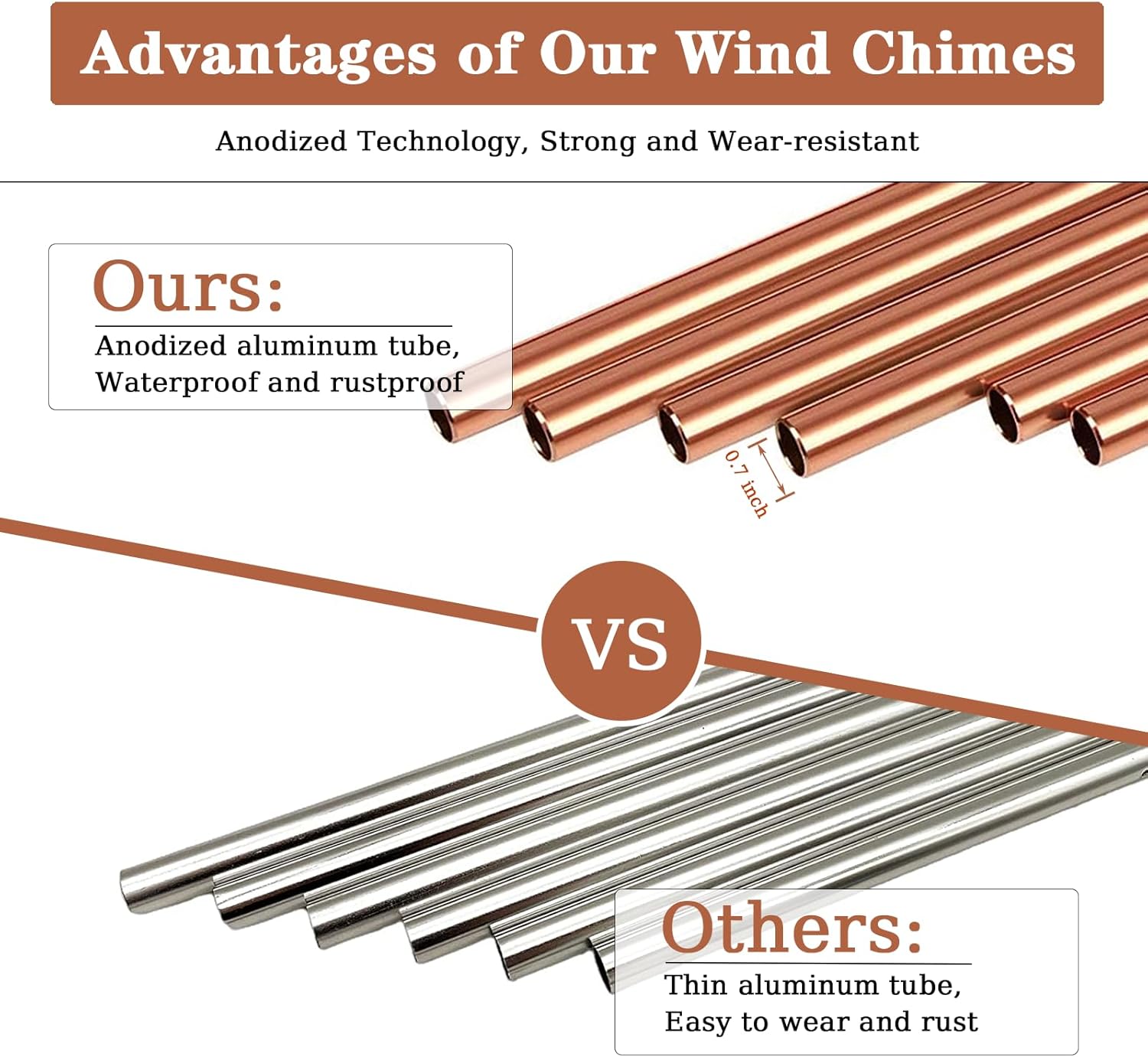 - Better Alternative than Flowers: Flowers will fade, but the memorial gift can last a long time. Compared to others' inferior wood planks, our sympathy wind chime is made of high-quality pine wood which is sustainable and recyclable. The 6 black thickened aluminum tubes are made of anodized technology to make them lasting, waterproof, wear-resistant, and can withstand all kinds of bad weather.