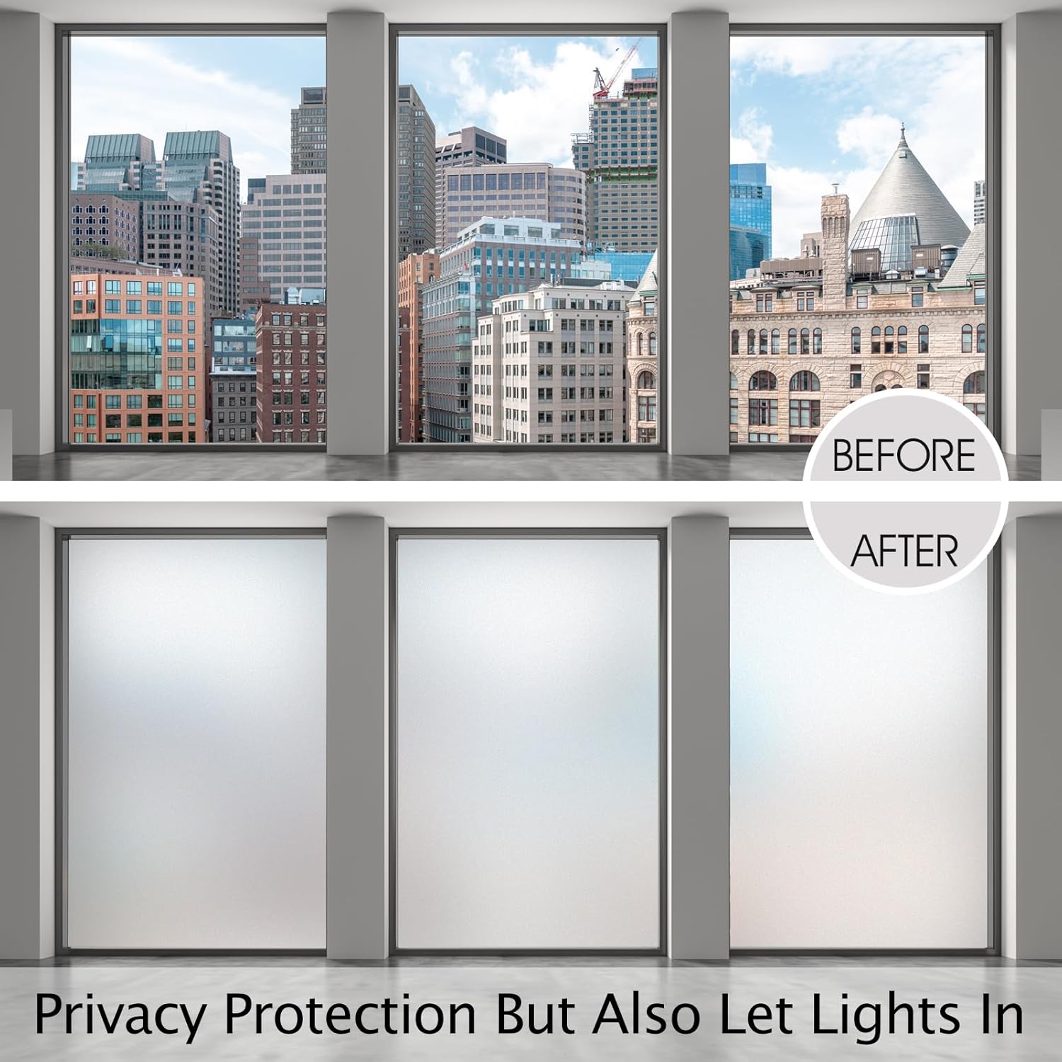 - NO GLUE & STATIC CLING: Super static cling to the window with a no-glue design, can protect your privacy well in an environmental way. Removable with no traces or residue left and can be applied several times, good to use at rented house or apartment.