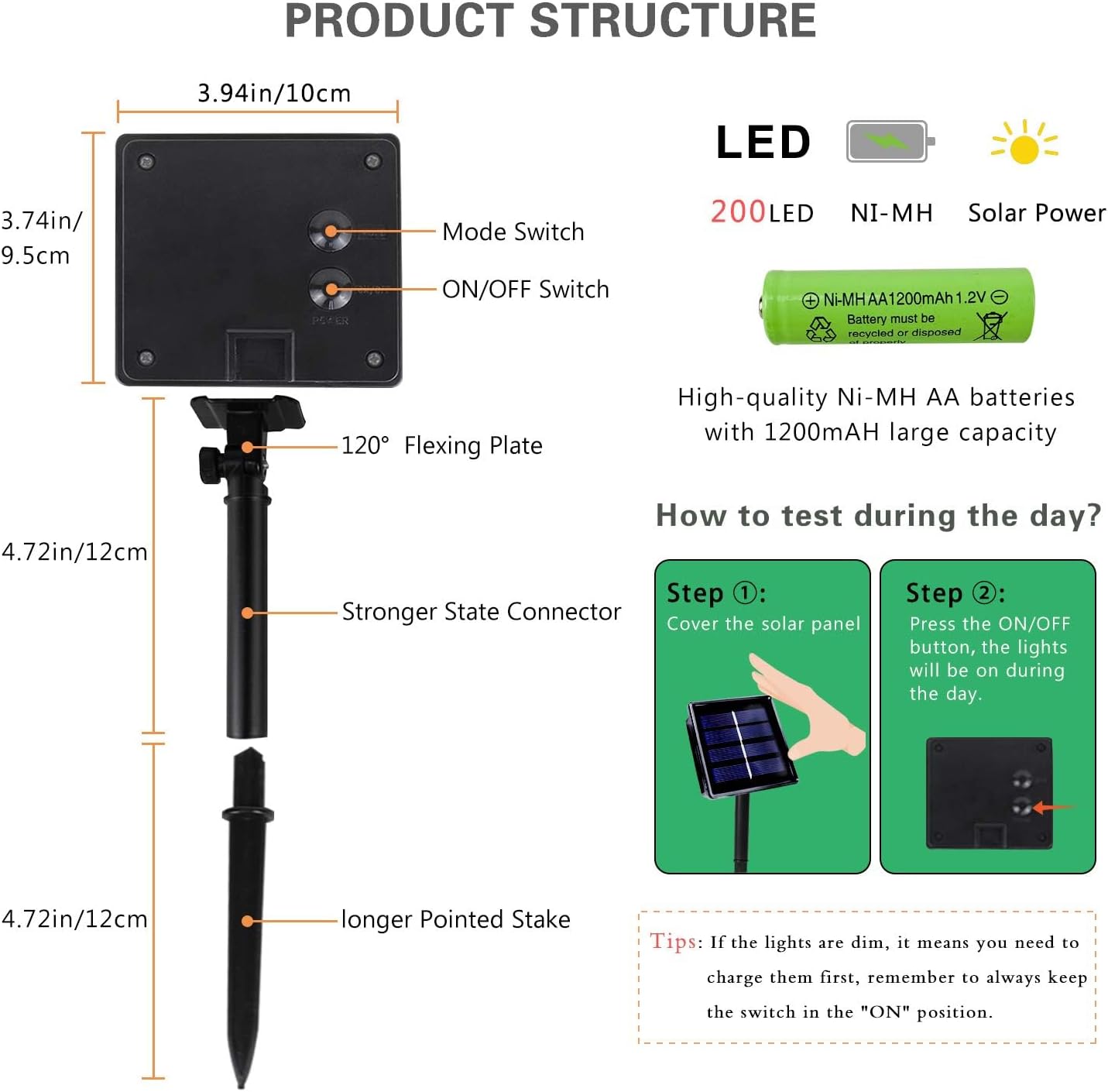 - 8 Lighting Modes, Memory Function and Auto On/Off: These solar twinkle lights have the On/Off button and Mode button. You can select 8 different modes to satisfy your diverse needs by pressing the mode button. And the built-in memory chip saves your last modes setting, so there is no need to reset it again.