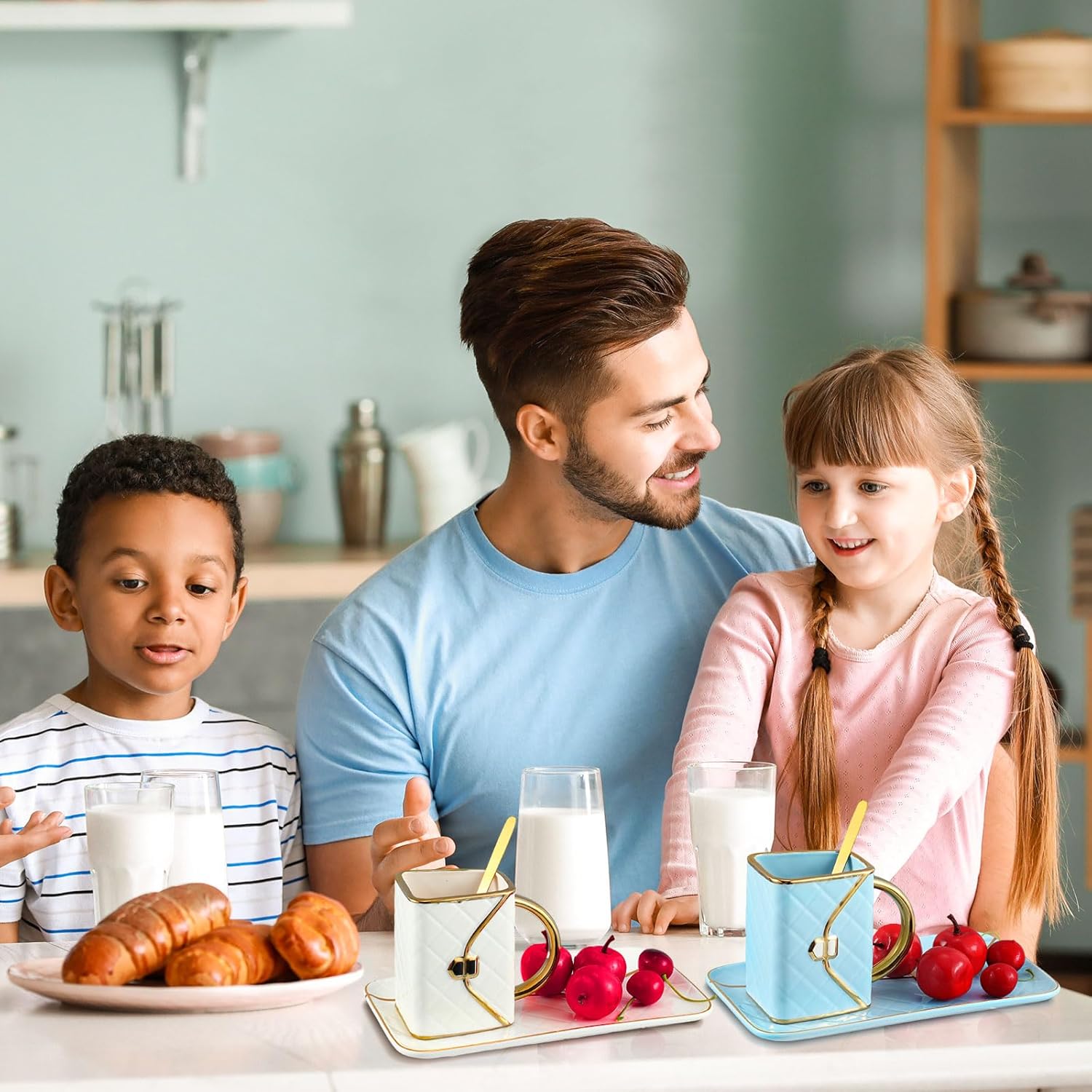 - Attractive and Elegant: the ceramic aesthetic coffee mug with saucer is characterized by handbag shapes and hand painted golden edges, and the color combination of white, blue and gold makes it more beautiful and graceful, which can bring both decorative and practical functions