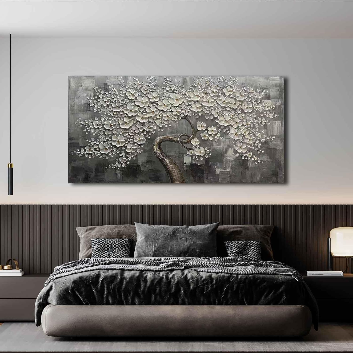 SDYA Flower Tree Wall Art Painting for Living Room White Botanical Picture for Bedroom Office Kitchen Home Decor Wall 30x60 Inches