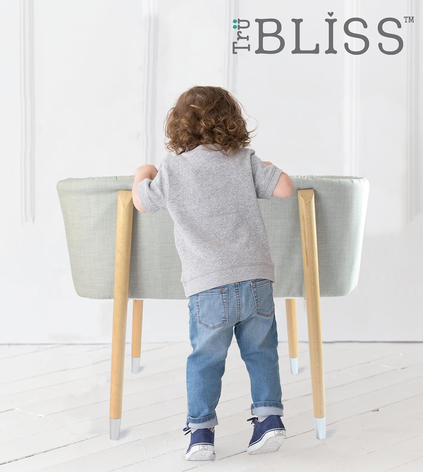 - SAFETY IN MIND - The TruBliss Sova Bassinet prioritizes your baby's safety with its extra deep breathable fabric walls, creating a secure and cozy environment for your newborn. This bassinet is not only functional but also stylish, featuring beautifully tapered solid Beech wooden legs with brushed brass tips. It comes with a padded, vinyl-covered foam mattress pad and two fitted sheets that are machine washable, making it suitable for even the messiest newborns.