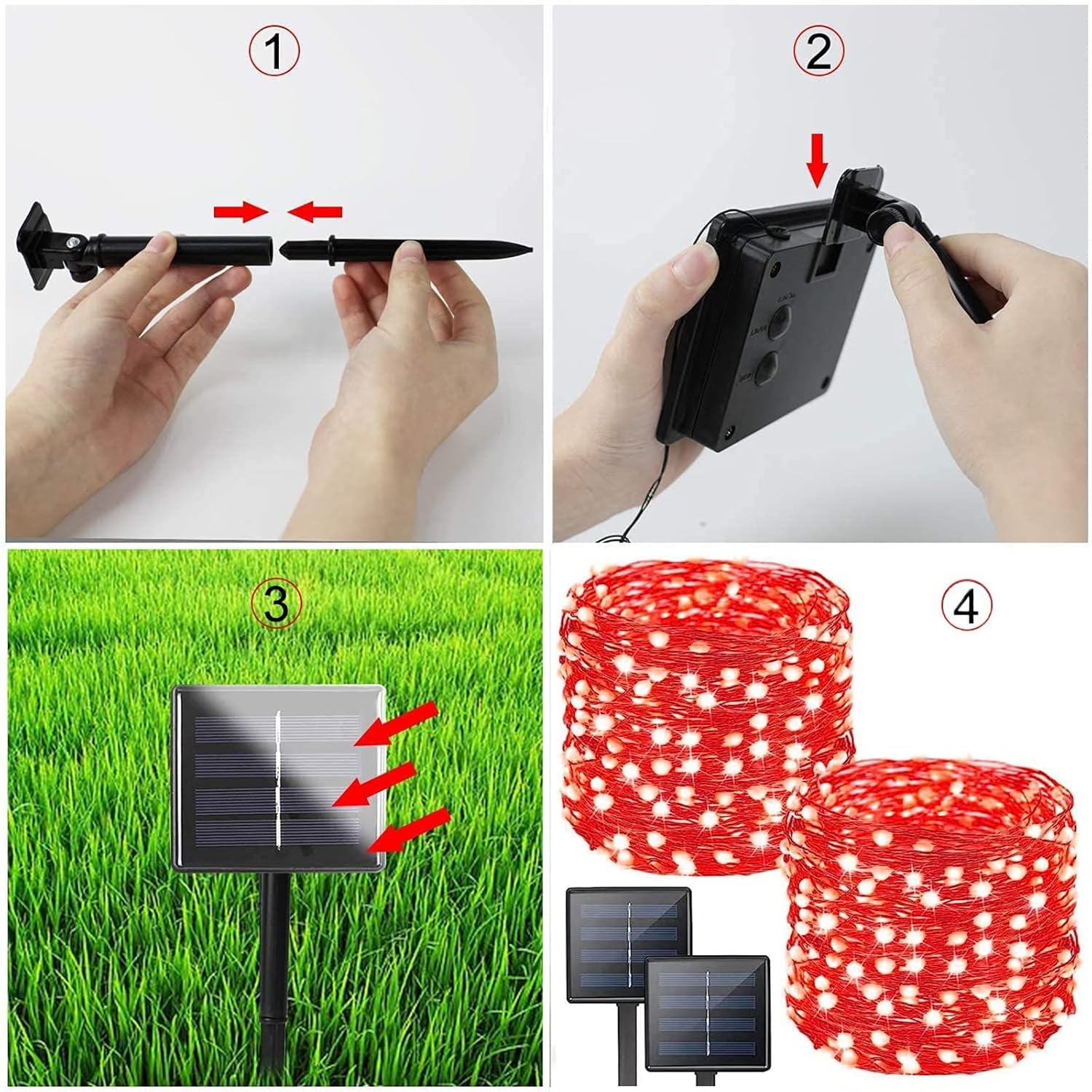 - [Upgraded 2-Pack Super Bright Solar String Lights] : Cute shape with powerful 1200mAh Capacity Battery. Super Bright Total 200 LED with Upgraded Larger LED Beads. 8 Lighting Modes with Memory Function & Auto On/Off, IP65 Waterproof Performance