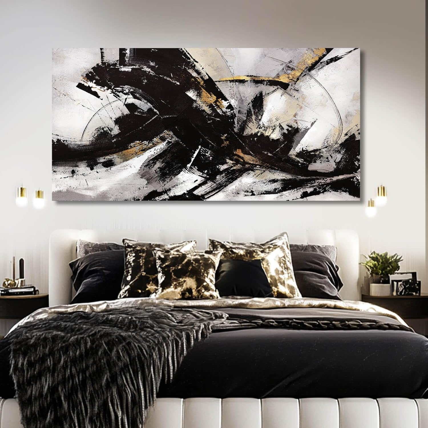 Abstract Wall Art for Living Room Canvas Wall Decor Large Artwork Black And Gold Wall Decorations Black Pictures for Wall 29"x58"