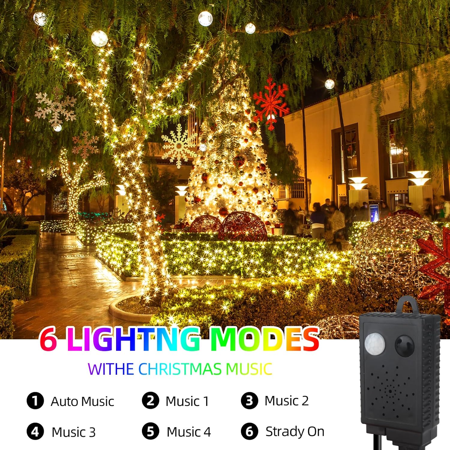 - CHRISTMAS STRING LIGHTS WITH MUSIC: XTF2015 warm white Christmas tree lights with motion sensor controller. When someone enters the 16-27 feet sensing range, the control box will play cheerful music, warm white lights are perfectly synchronized with the cheerful Christmas music, which will be the best product for your Christmas decoration.