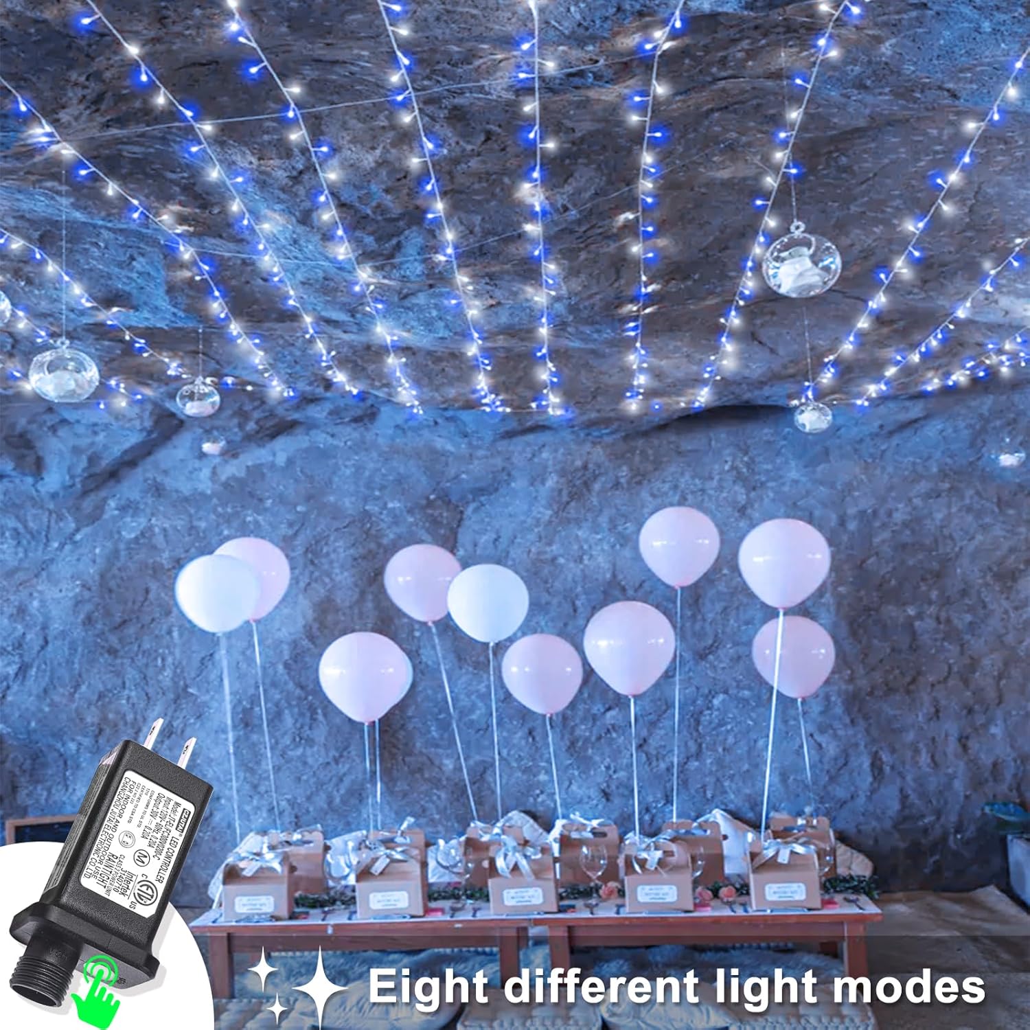 - Waterproof Blue and White Lights: The Christmas lights design with IP44 outdoor waterproof, can withstand wind, snow, rain and extreme weather. String lights are equipped with a UL certified 29V low-voltage plug ensures the safety. It's safe for family with kids or pets!