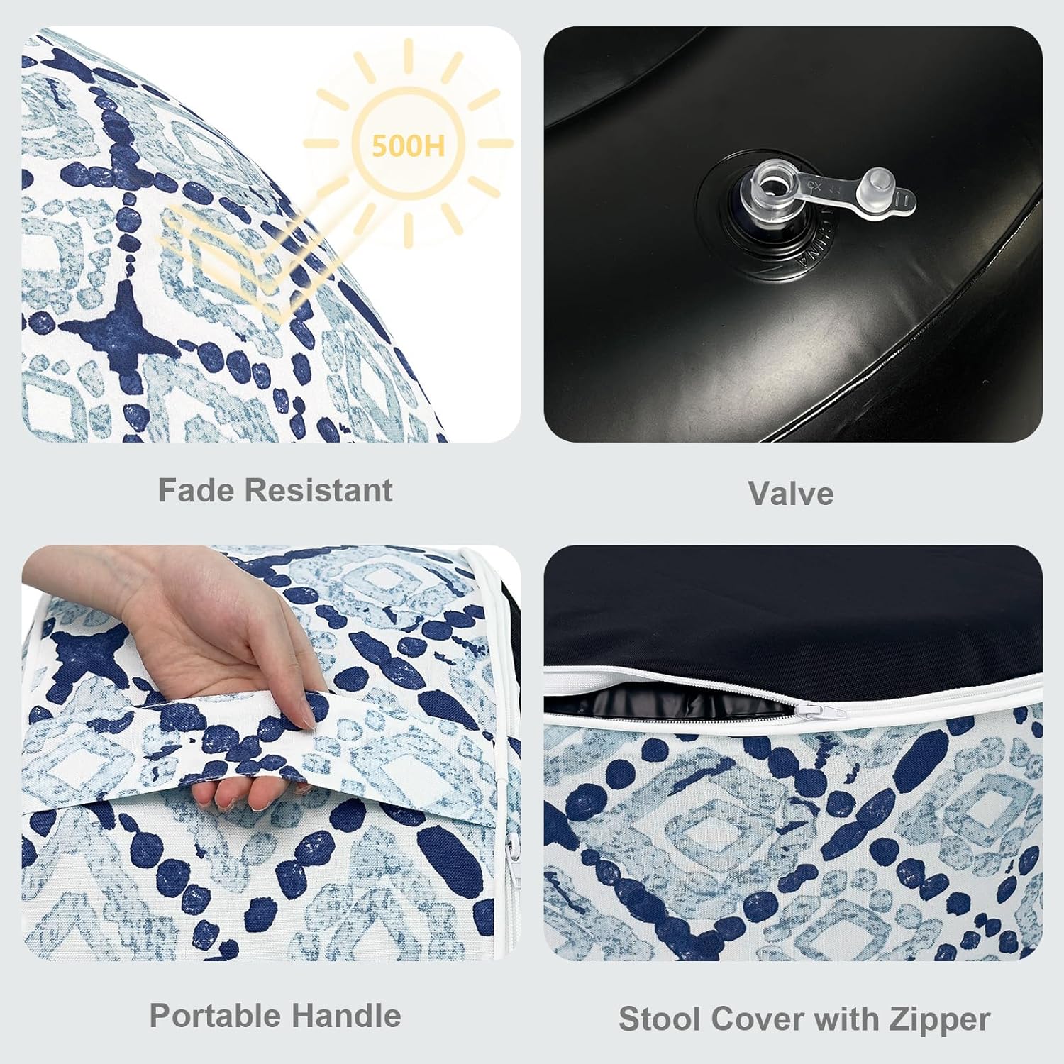 LVTXIII Inflatable Stool Ottoman Footrest with Handle, Decorative Fade-Resistant Foot Stool, Indoor or Outdoor Pouf for Home Garden and Camping Use, 21x21x9, Boho Geometry Blue