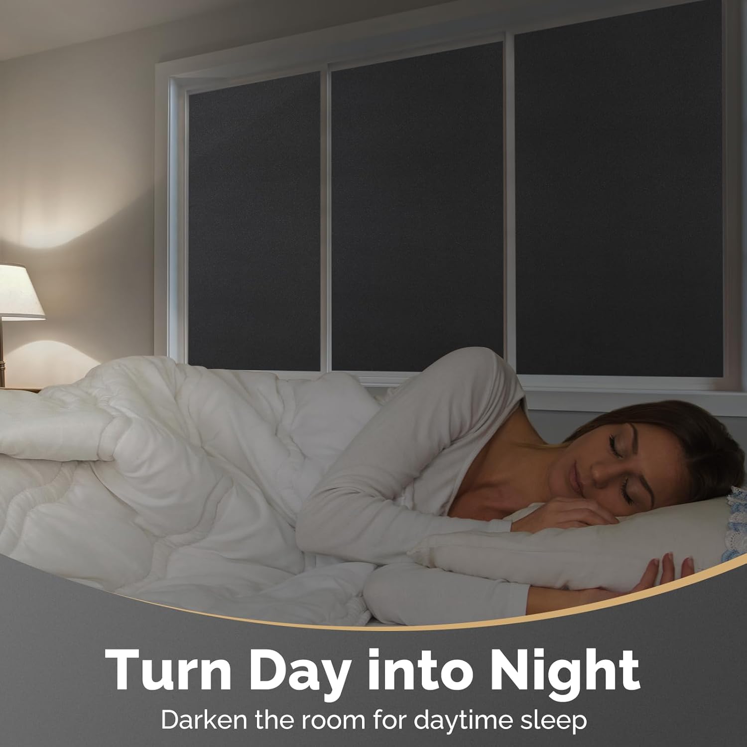 DOWELL Blackout Window Film, 100% Light Sun Blocking Static Cling Frosted Privacy Film for Glass, Heat Control Removable Window Tint, Room Darkening Cover for Day Sleep, Black, 17.5" x 78.7"