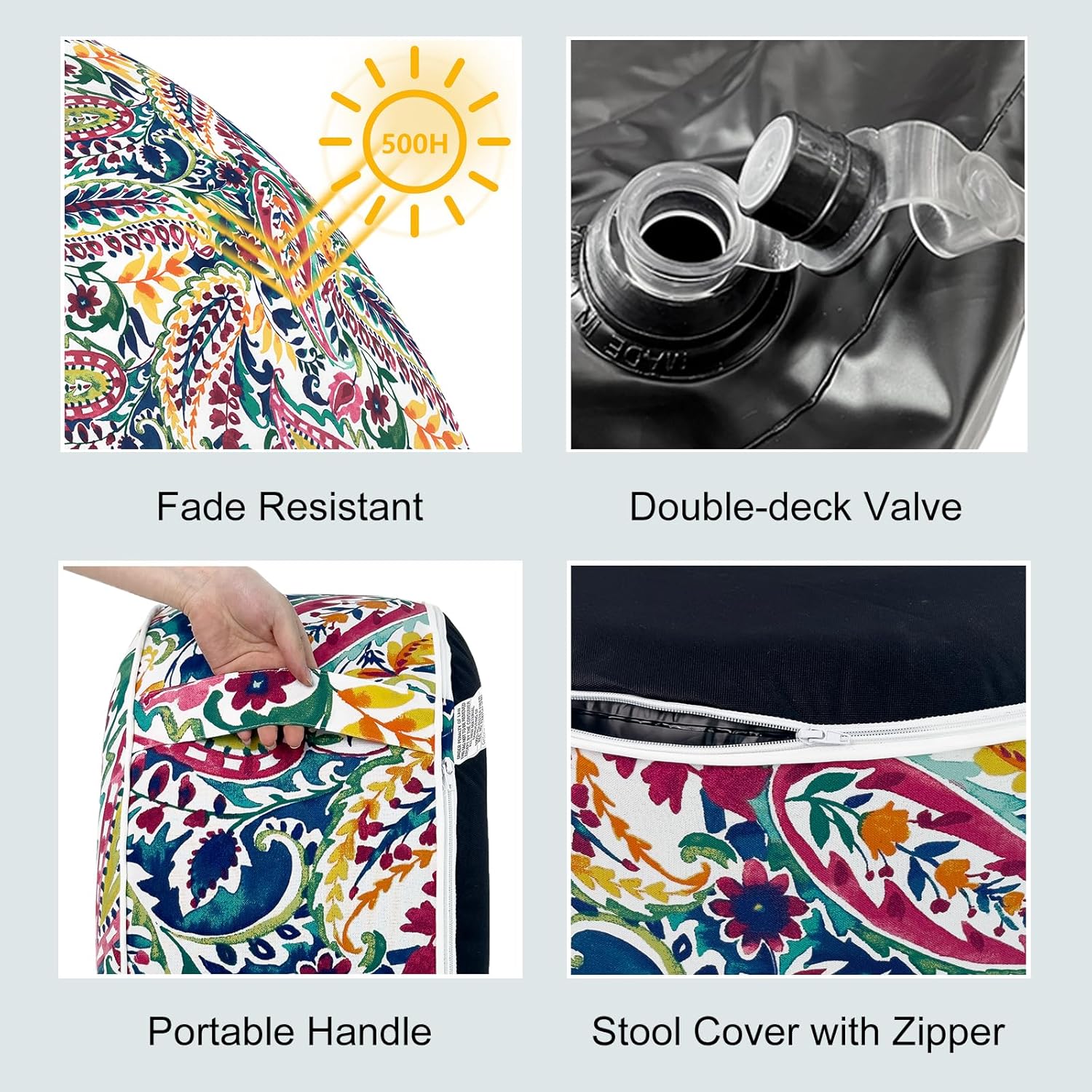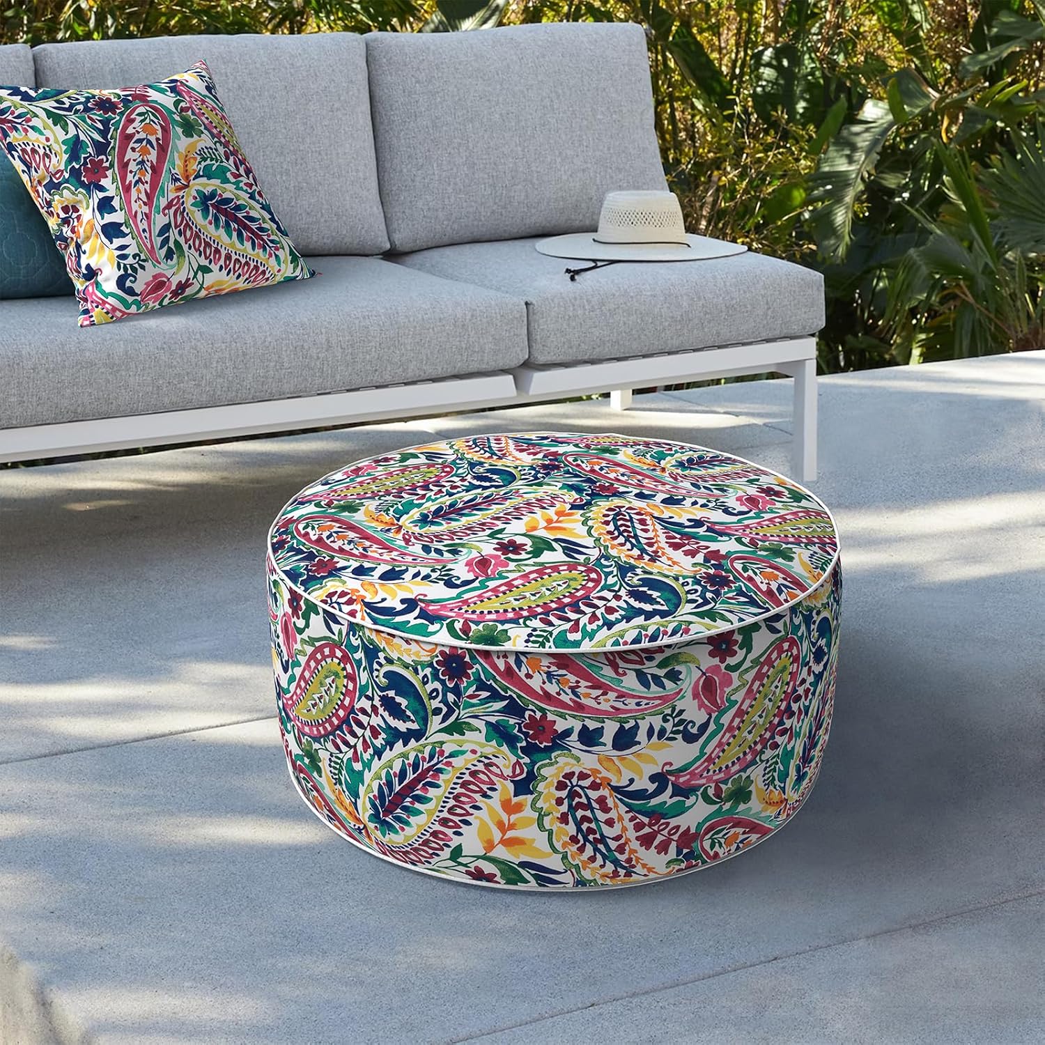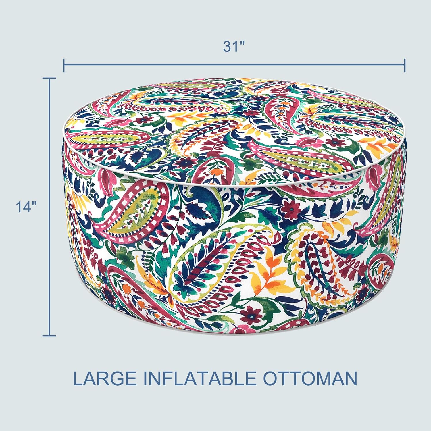 LVTXIII Indoor/Outdoor Inflatable Ottoman, D31 x H14 Inch Large Round Ottoman, All Weather Foot Rest Stool, Portable Footrest for Patio, Garden, Camping and Home - Vigour Paisley