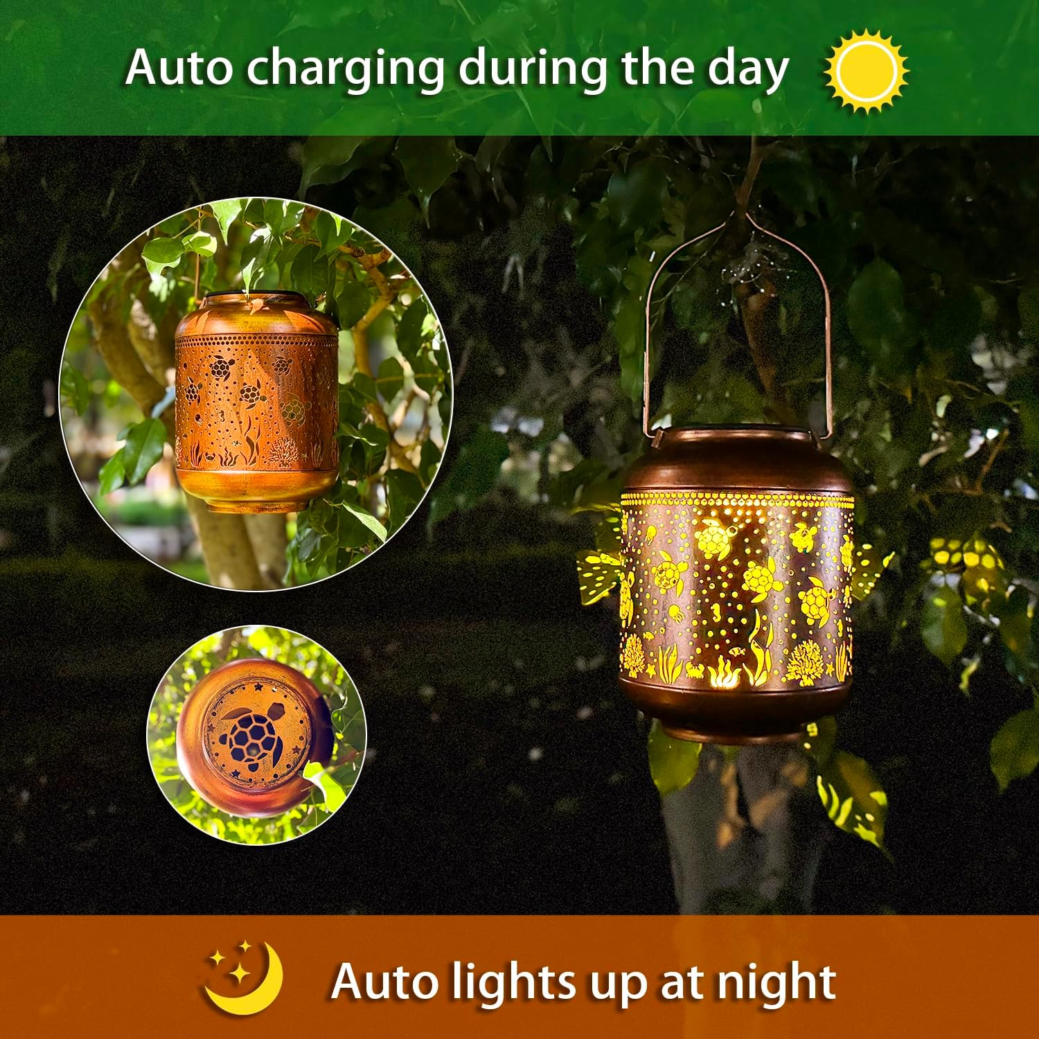 - 【Ideal Garden Gifts】Sea Turtle symbolize good luck,wisdom,love,among other good meanings.This Sea Turtle solar hanging lantern is perfect for Mother's Day,Father's Day,Thanksgiving,Christmas,Valentine's Day,birthdays,weddings,New Year's and housewarming gifts for mothers,fathers,wives,husbands,grandmothers,grandfathers,lovers,daughters,sons,friends or yourself.Excellent choice for garden decoration!