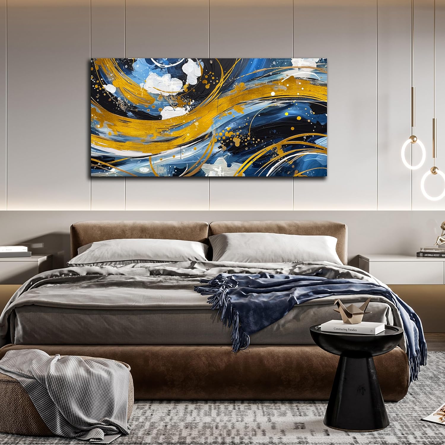 - ABSTRACT WALL ART CANVAS: The theme of this wall art prints is "Golden Strokes". It make your room more artistic. There are many themed art wall decor in our store, such as cute animals, flowers, abstract art, graffiti, etc
