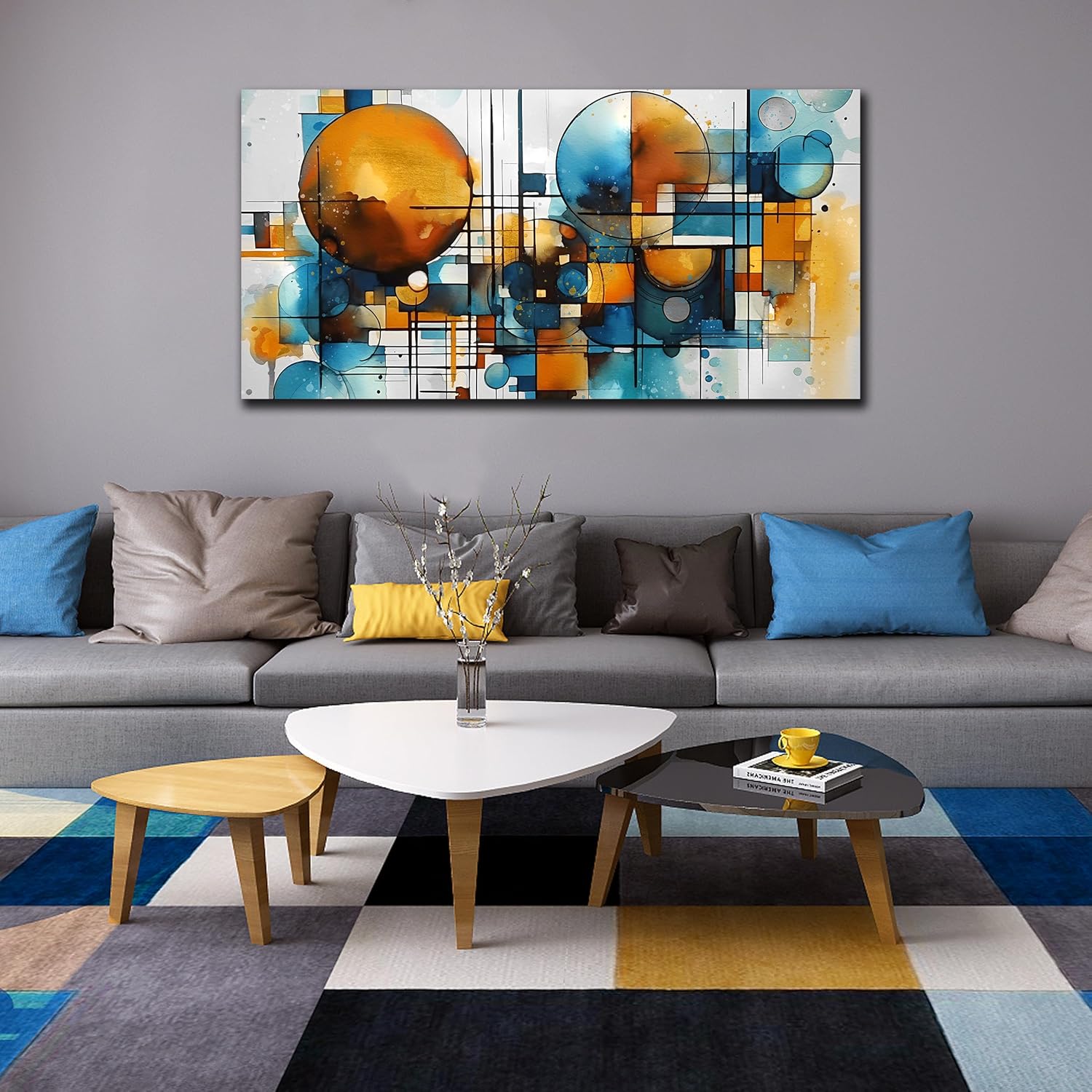 - ABSTRACT WALL ART CANVAS: The theme of this wall art prints is "Circle and Line". It make your room more artistic. There are many themed art wall decor in our store, such as cute animals, flowers, abstract art, graffiti, etc