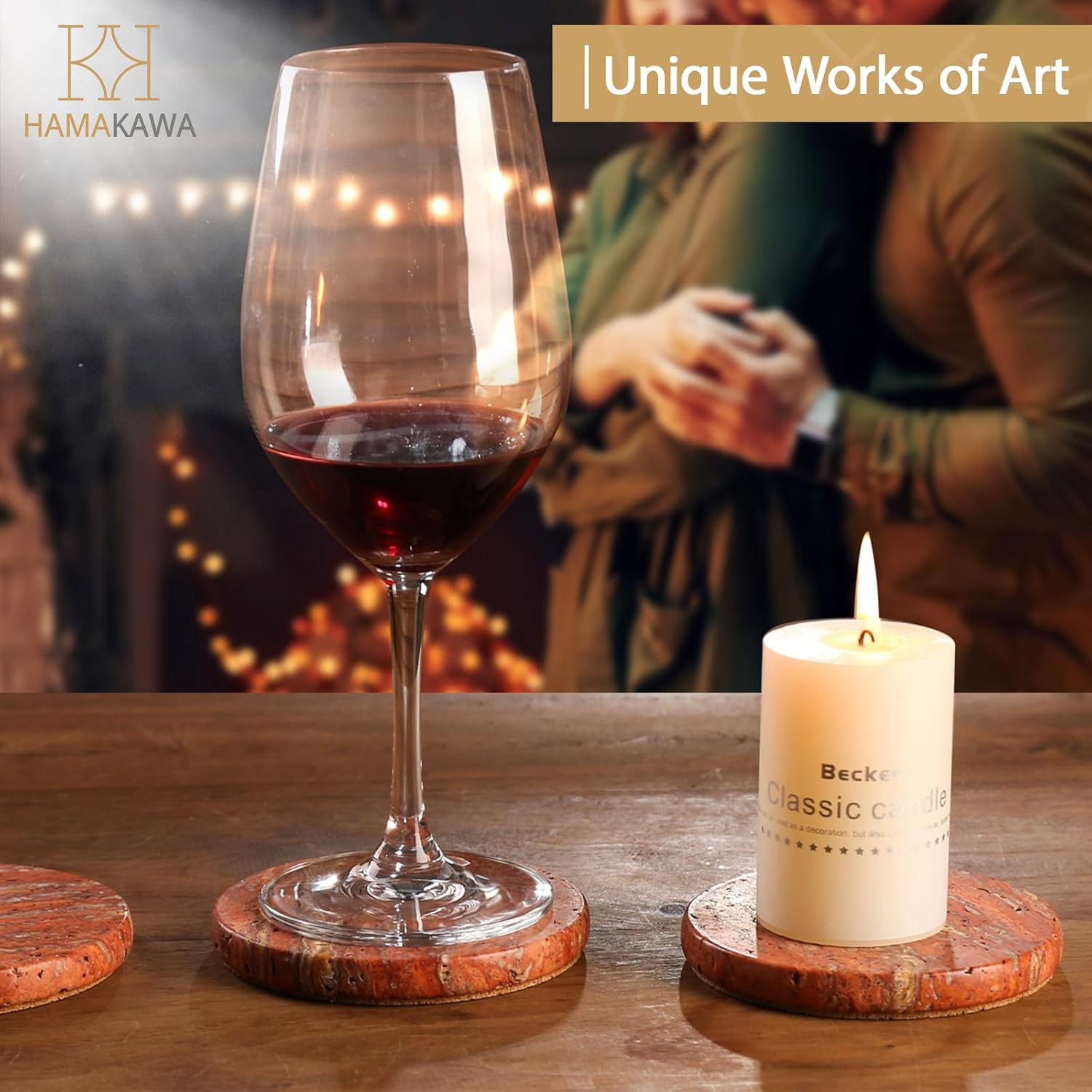 Real Natural Marble Coasters Set of 4, Modern Red Stone 4 Inch, Round Travertine Drink Coasters for Home Decor, Coffee Table, Office