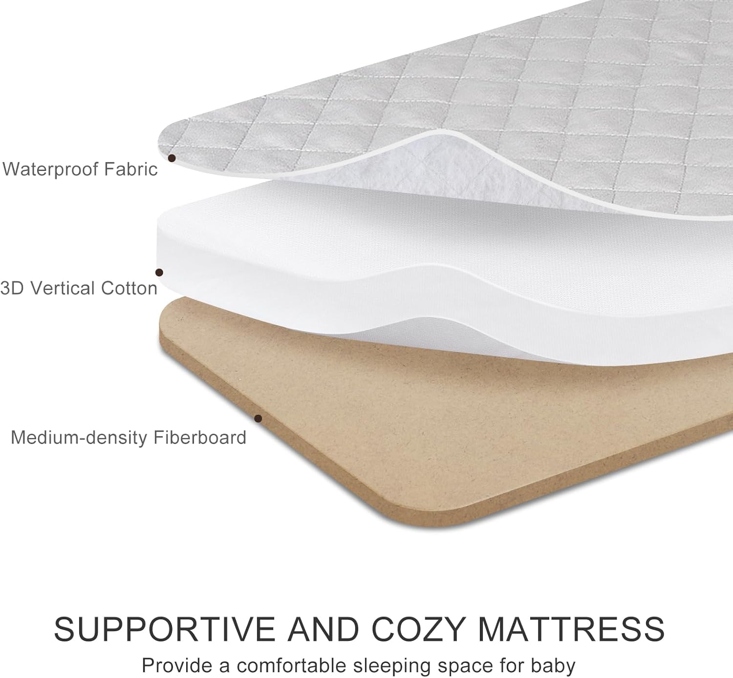 - Comfortable and Cozy: The bedside bassinet mattress made of high-density foam that is soft and firm for baby sleeping, comes with thickened cotton-filled sheet provides extra comfort. Removable and machine-washable.