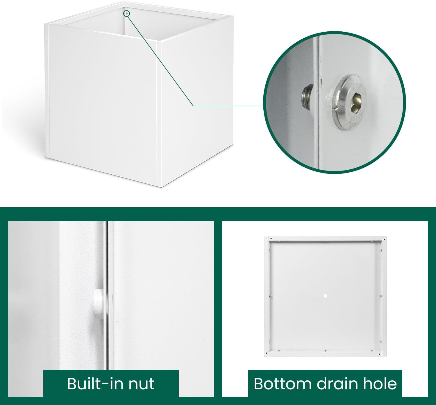 - White Steel Planter: Galvanized planter box is made of galvanized steel with white powder coating. Galvanized Steel Planter is wear-resistant, corrosion-resistant and long lifetime.
