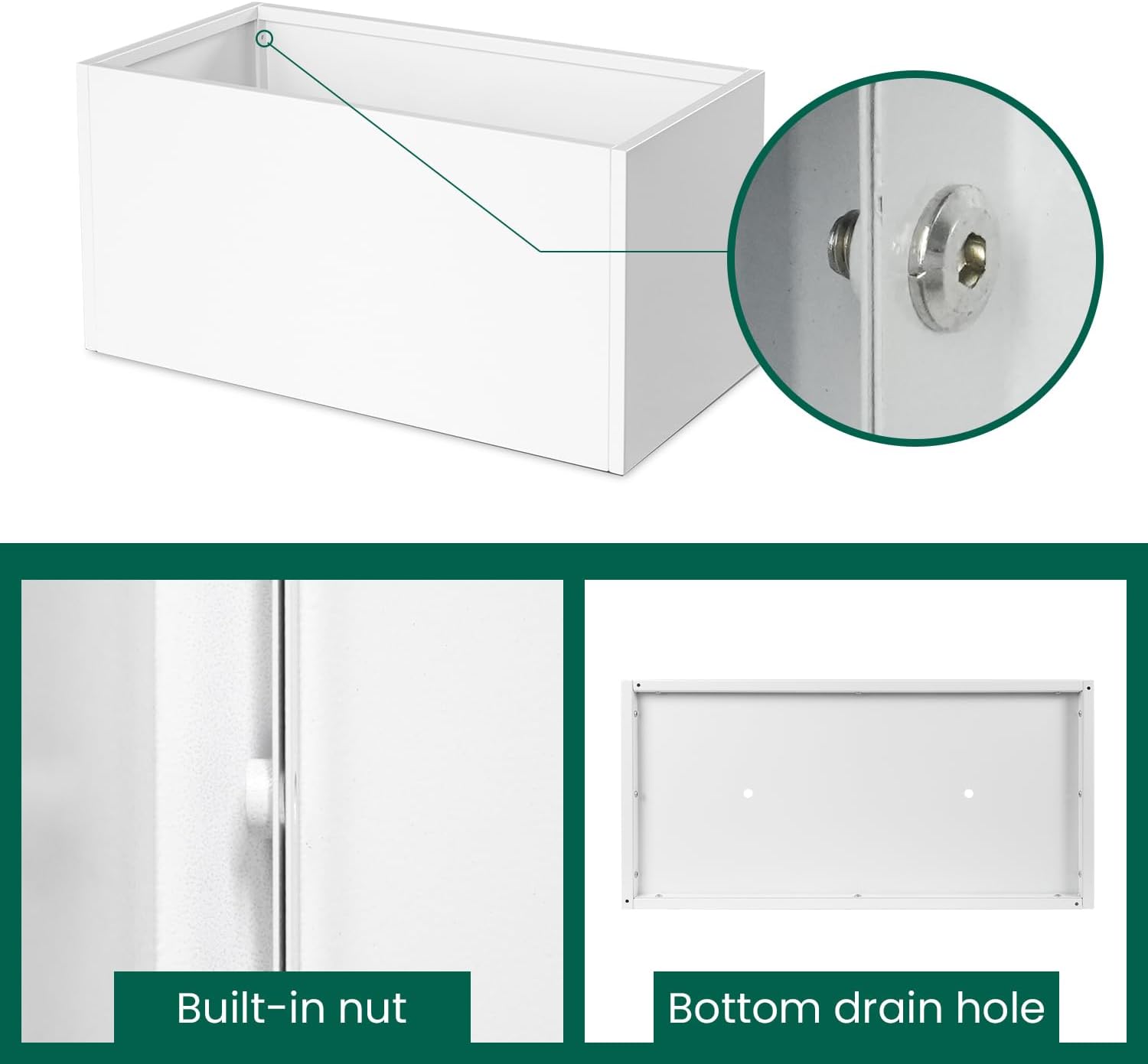 - [ White Steel Planter] Galvanized planter box is made of galvanized steel with white powder coating. Galvanized Steel Planter is wear-resistant, corrosion-resistant and long lifetime.