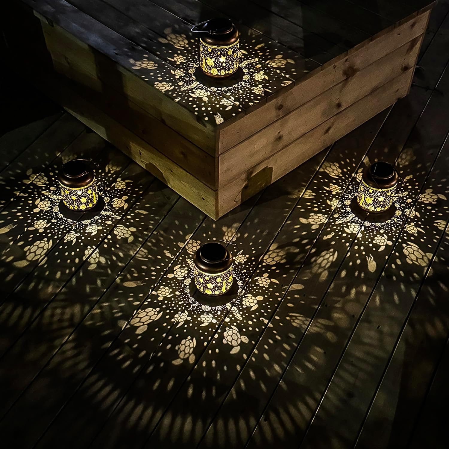 - 【Perfect Garden Decorations】Sea Turtle solar lantern can project unique and beautiful patterns in a dim environment,creating a gorgeous and warm atmosphere to bring life and fun to your garden and attract your family or friends.The unique hollow out design and beautiful antique bronze color give it an artistic touch,perfect for decorating gardens,backyards,corners,Outside,sidewalks and many other scenes