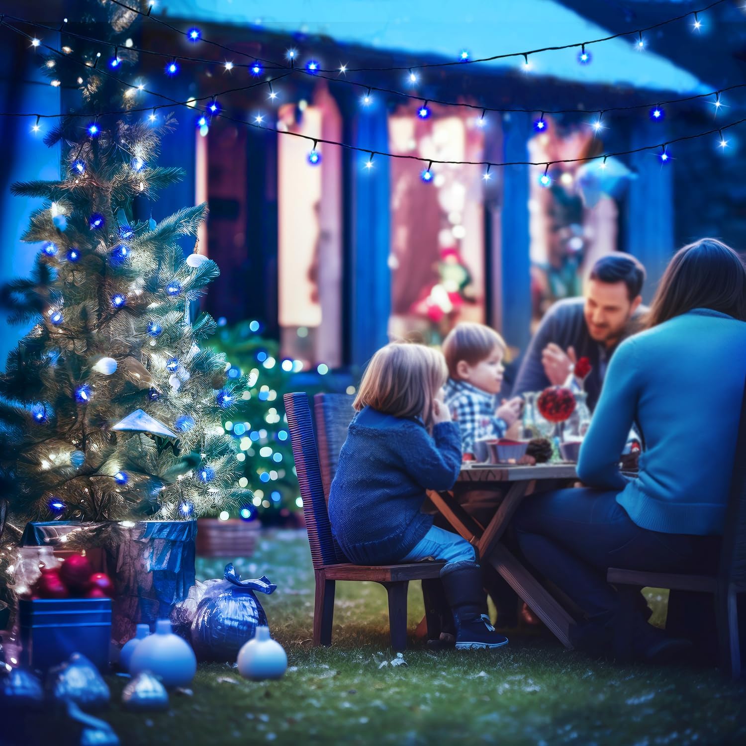 JMEXSUSS 2 Pack Blue & White Solar String Lights, Each 100 LED 33ft, Waterproof, 8 Modes for Outside Garden Patio Party Decoration