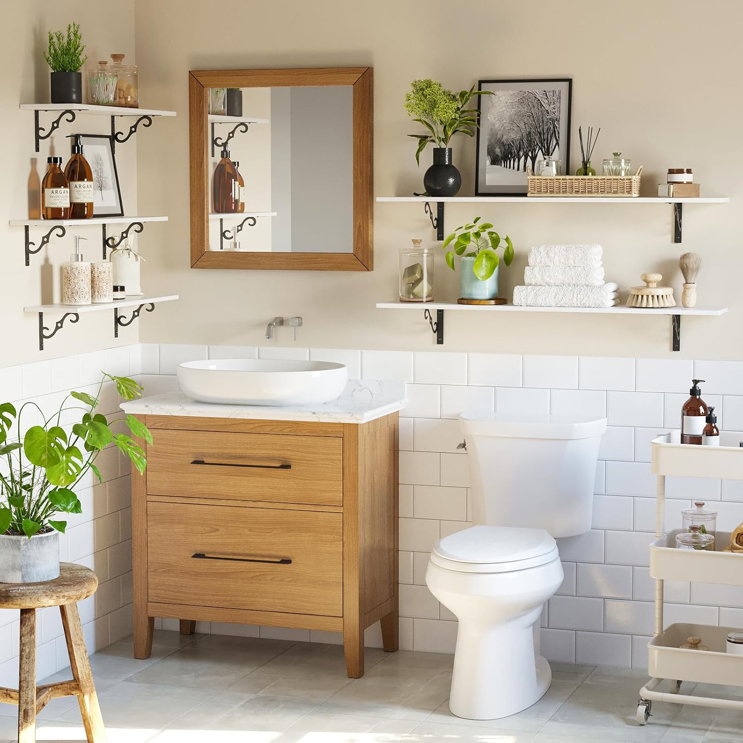 - 【Well Made】Made of premium particleboard and expertly designed metal brackets, sturdy and durable. Thicker brackets bring added stability and stronger load-bearing capacity(up to 33lbs), supporting the wood shelves without sagging over time. All edges are well-finished for smoothness