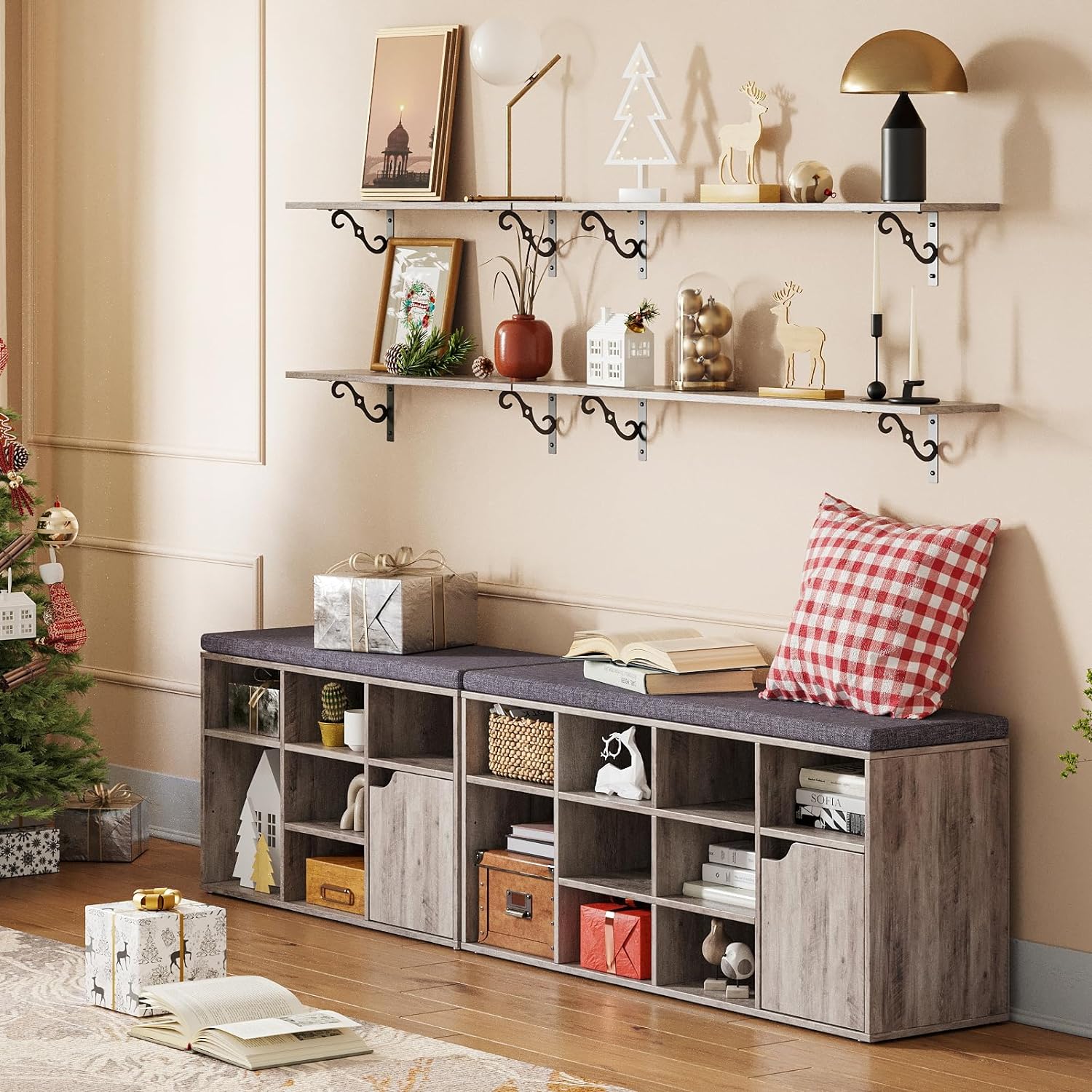 - 【Age with Grace in Any Setting】Turn your any wall into a real eye-catcher space with these large wall shelving. Long and wide enough for plates, glasses, books, legos, collection or towels etc. Make a statement in entryway, bathroom, balcony, study, kitchen, laundry, bar area, pantry