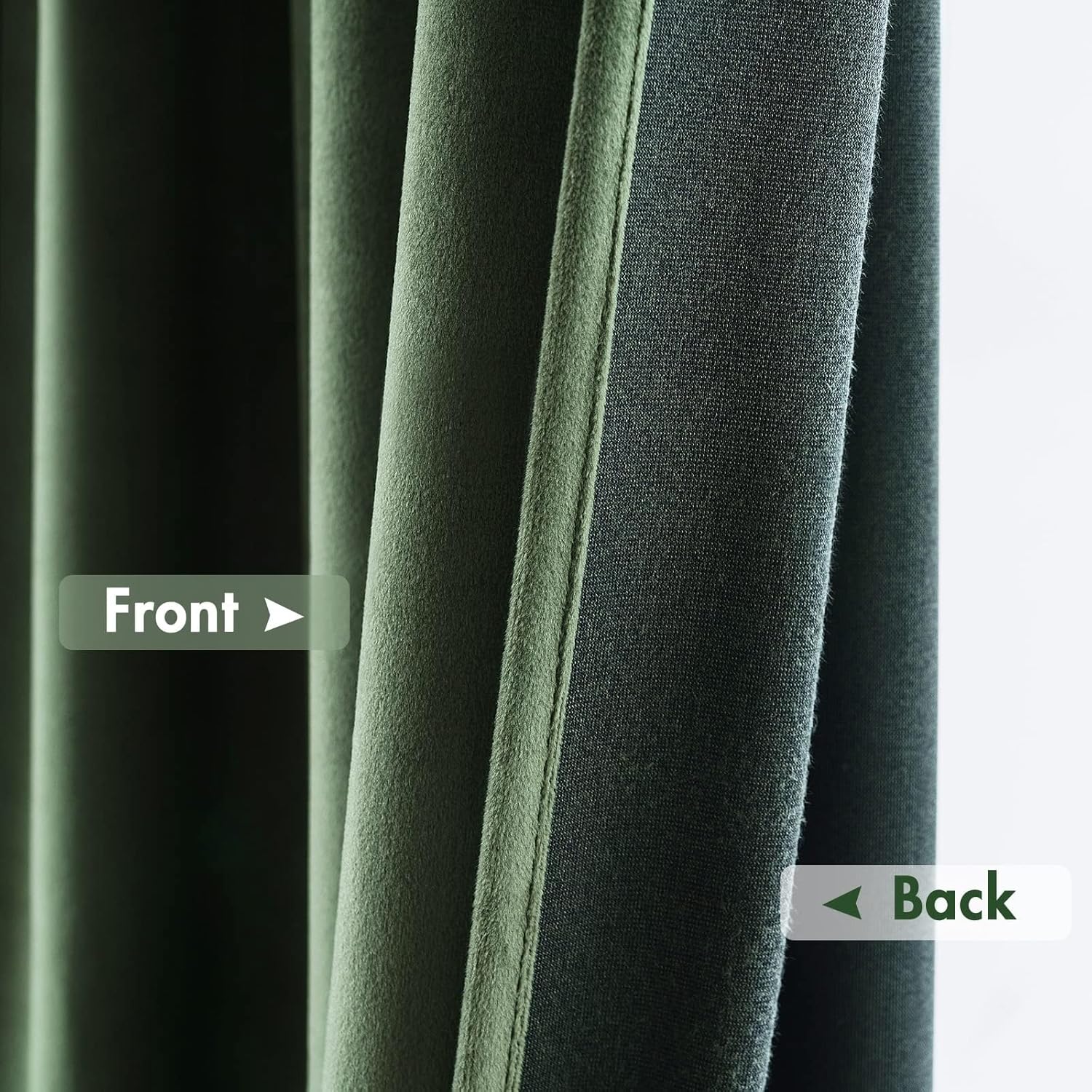 MIULEE Olive Green Velvet Curtains Thermal Insulated Blackout Curtain Drapes for Bedroom Living Room Darkening 92 Inches Long Curtains Panels Rod Pocket Set of 2