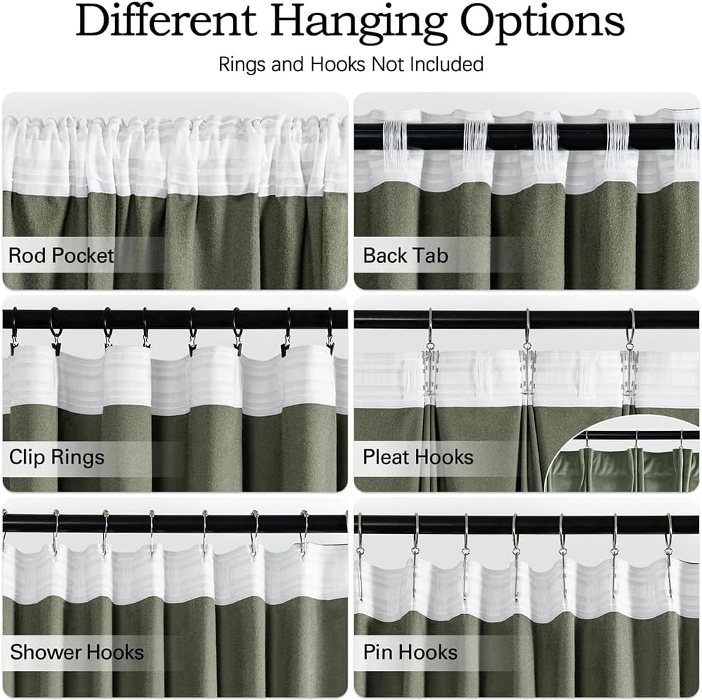 - HANGING OPTIONS: Each curtain panel has 3-in-1 top style design: rod pocket, back tab and pinch pleat. Back loop (2.3 inch) and rod pocket (3.1 inch) fit most standard rod. Curtains also can be hung with clip rings or curtain hooks. 3 ways to meet your various needs.