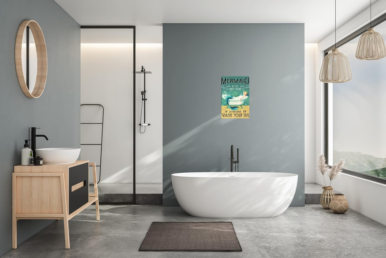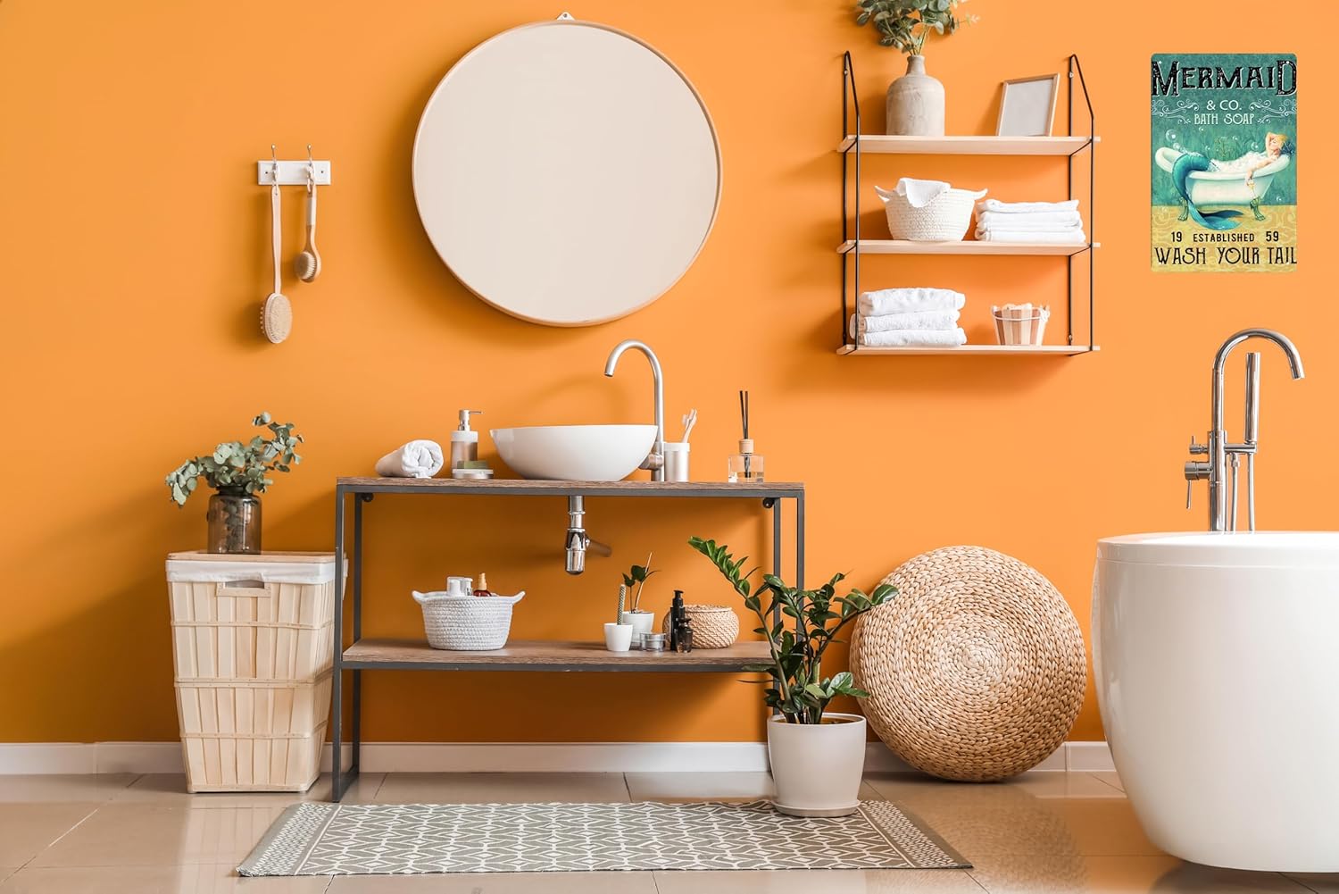 Mermaid Decor Gifts Funny Bathroom Decor Wall Art Coffee Bar Vintage Metal Tin Sign - Wash Your Tail - Office Home Toilet Signs Wall Decor Pictures 8 X 12 Inch