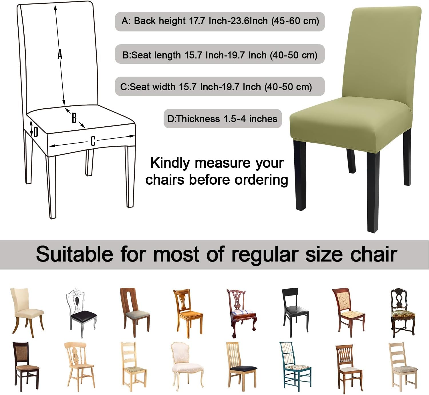 - 【Suitable for Chair Size】- Chair back height 17.7 Inch-23.6Inch (45-60 cm), Chair seat length and width 15.7 Inch-19.7 Inch (40-50 cm). Please check the measurement guide in the item picture before order