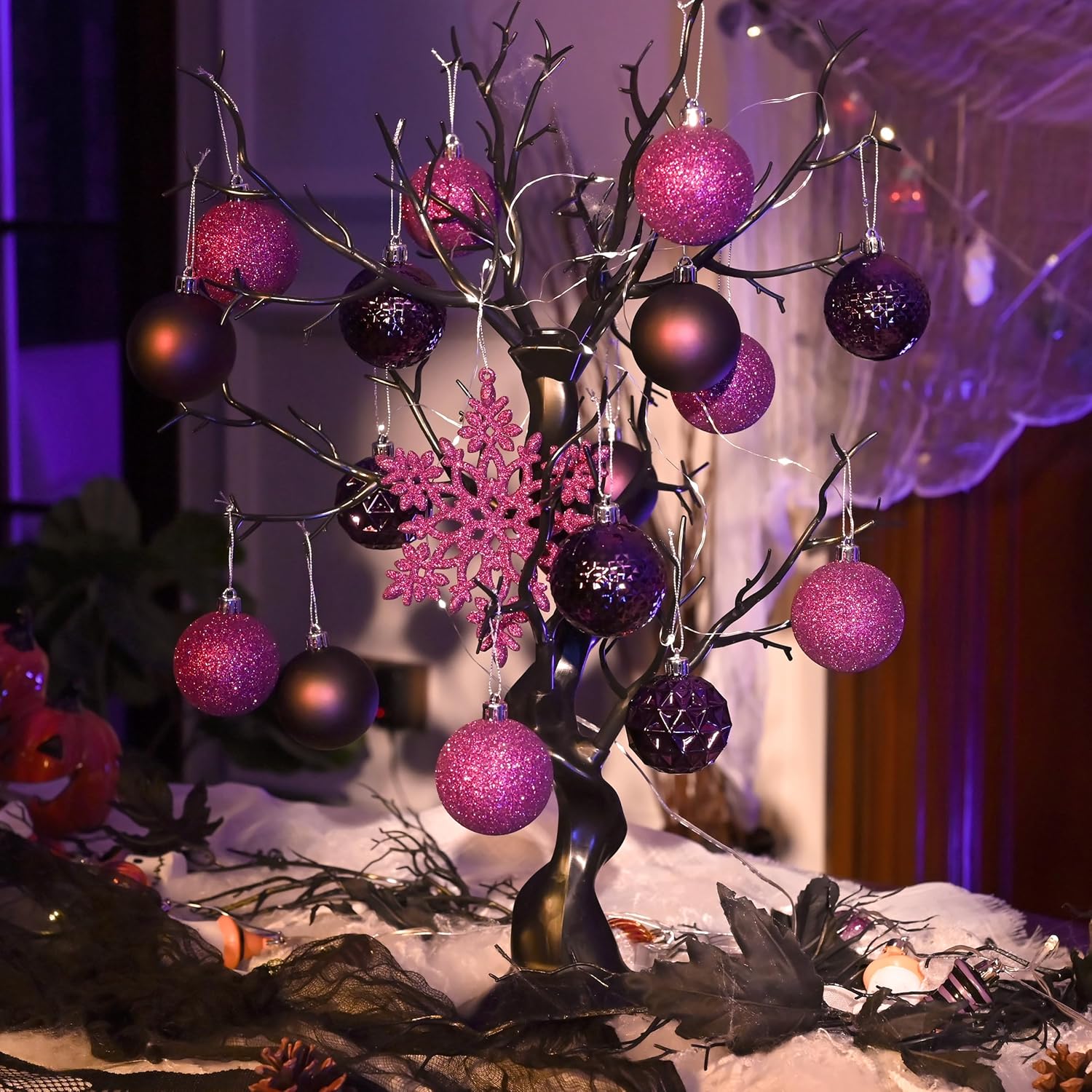 Valery Madelyn Christmas Tree Decorations Ornament Set for Fall Halloween, 50ct 2.36 Inches Purple Shatterproof Christmas Ball Ornaments Hanging Xmas Holiday Party Decor