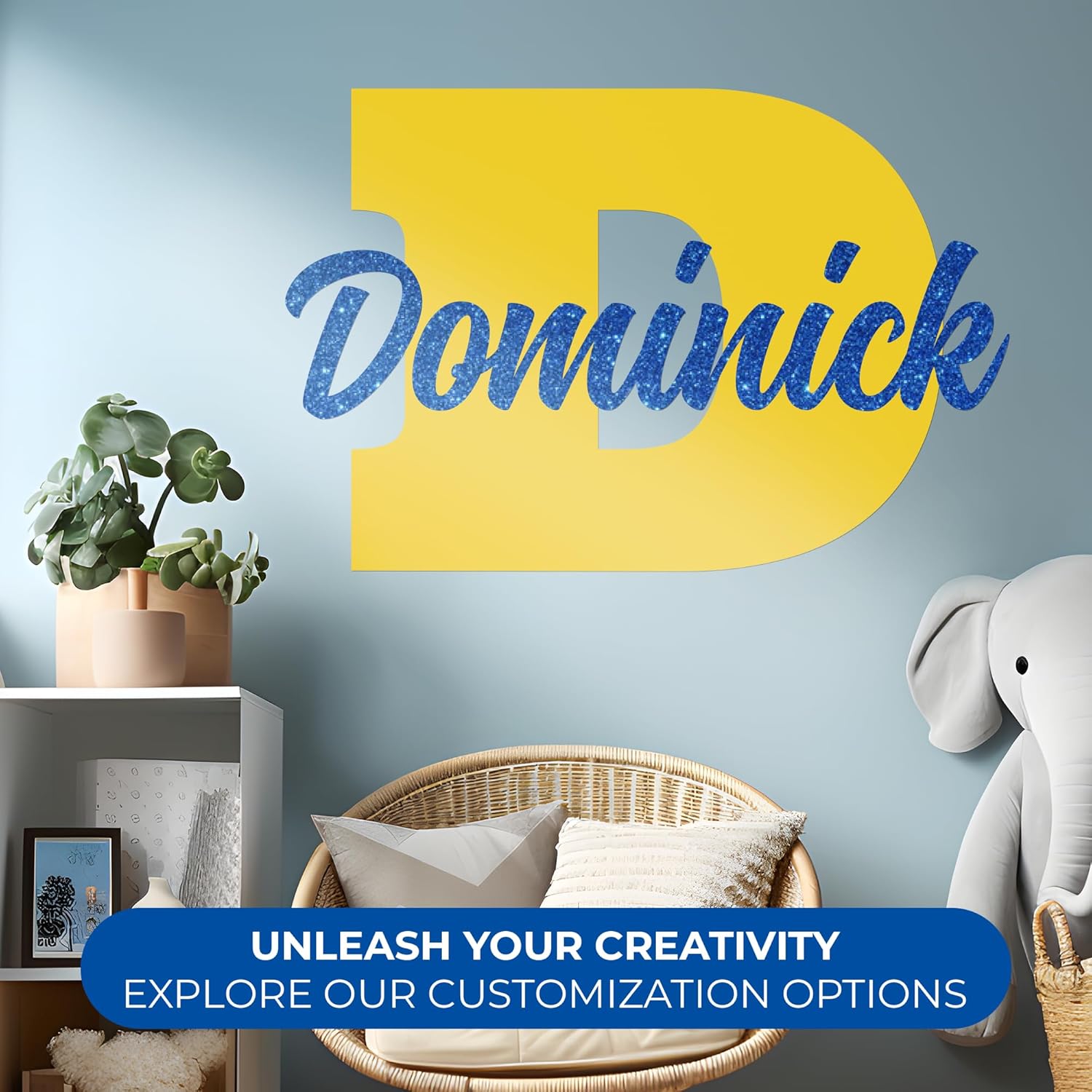 CRYPTONITE Personalized Name Sign for Kids Bedroom Decor I Custom Name for Nursery Decor for Girls Boys I Stickers for Baby Room I Custom Decal with Multi-Size (B. Name Glitter & Initial)