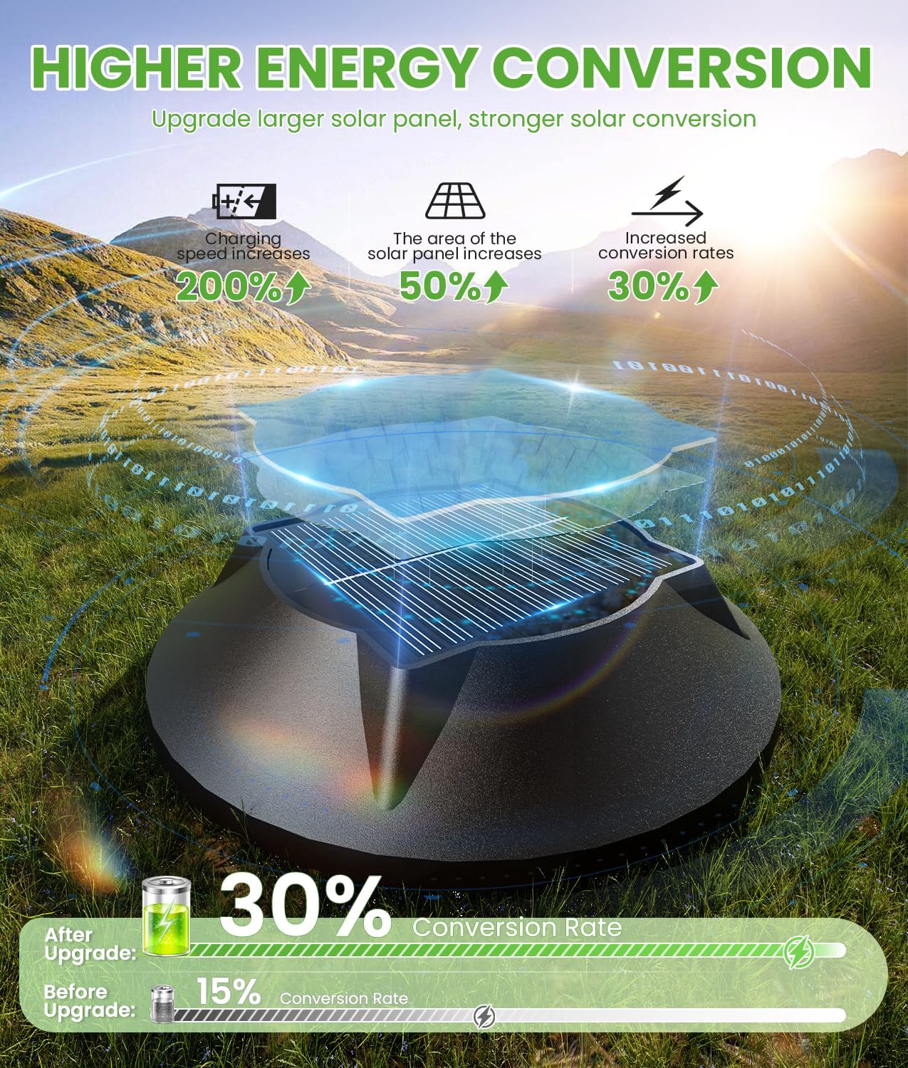 - 【Upgraded Solar Panel & Auto On/Off】Our solar outdoor lights are equipped with 5V monocrystalline silicon solar panels with 30% higher conversion rate, Built in 3.7V/1.85WH Battery Charging for 4-6 hours can continuously emit light for 10-12 hours. Compared with other outdoor lights solar powered, our solar walkway lights outdoor charge faster and work longer.