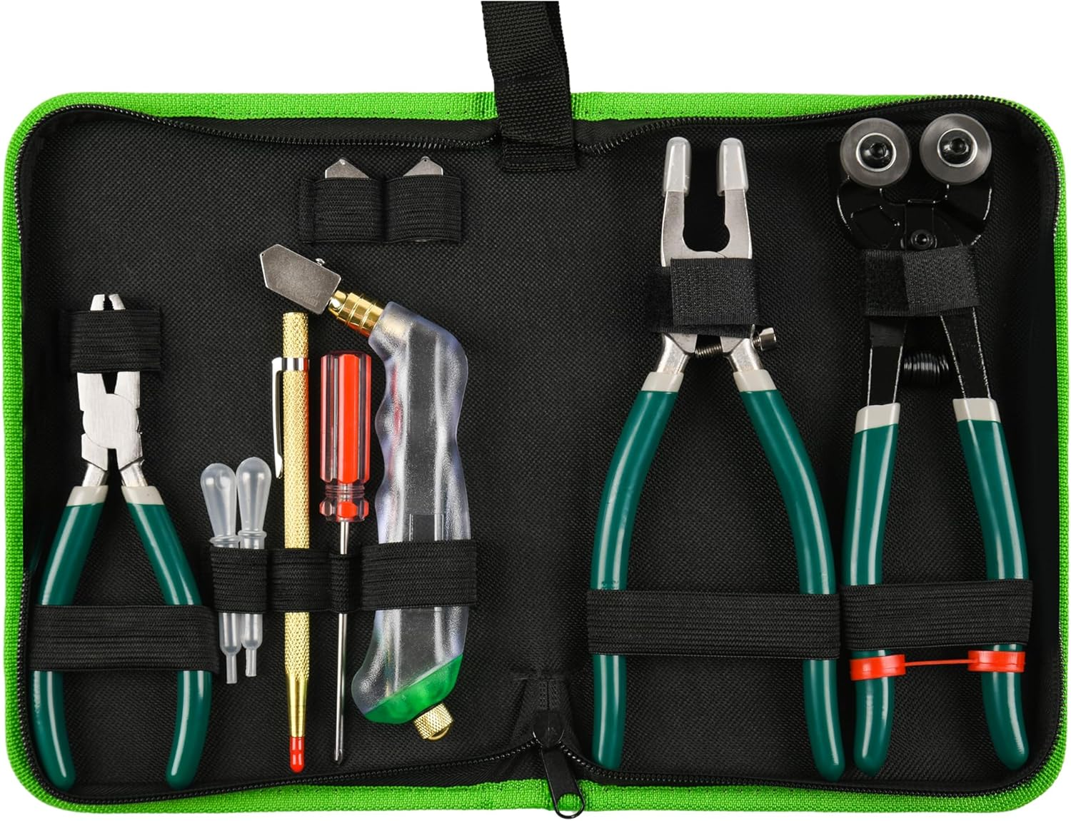- 【WIDELY USED】: This glass cutting tool kit is used for crafts, mosaic, tile, mirror, stained glass cutting, ceramic, glass tile, crystal mosaic, window glass. Suitable for various DIY projects and home decoration glass cutting.