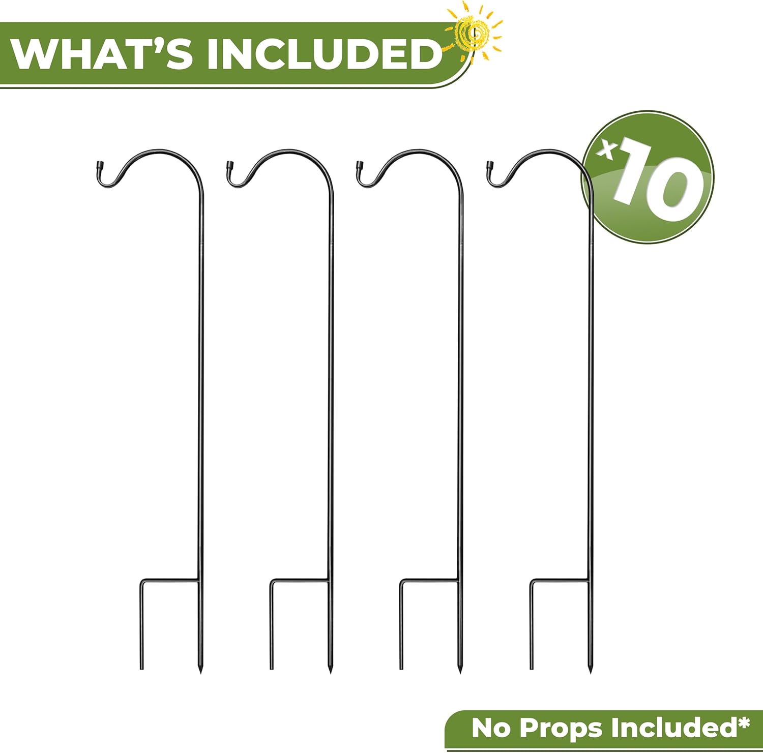 Sorbus Shepherds Hooks for Outdoor - Set of 10 Extendable Garden Planter Stakes for Bird Feeders, Outdoor Décor, Plants, Lights, Lanterns, Flower Baskets and More! Supports Up to 6.5 Lbs. (10 Pack)