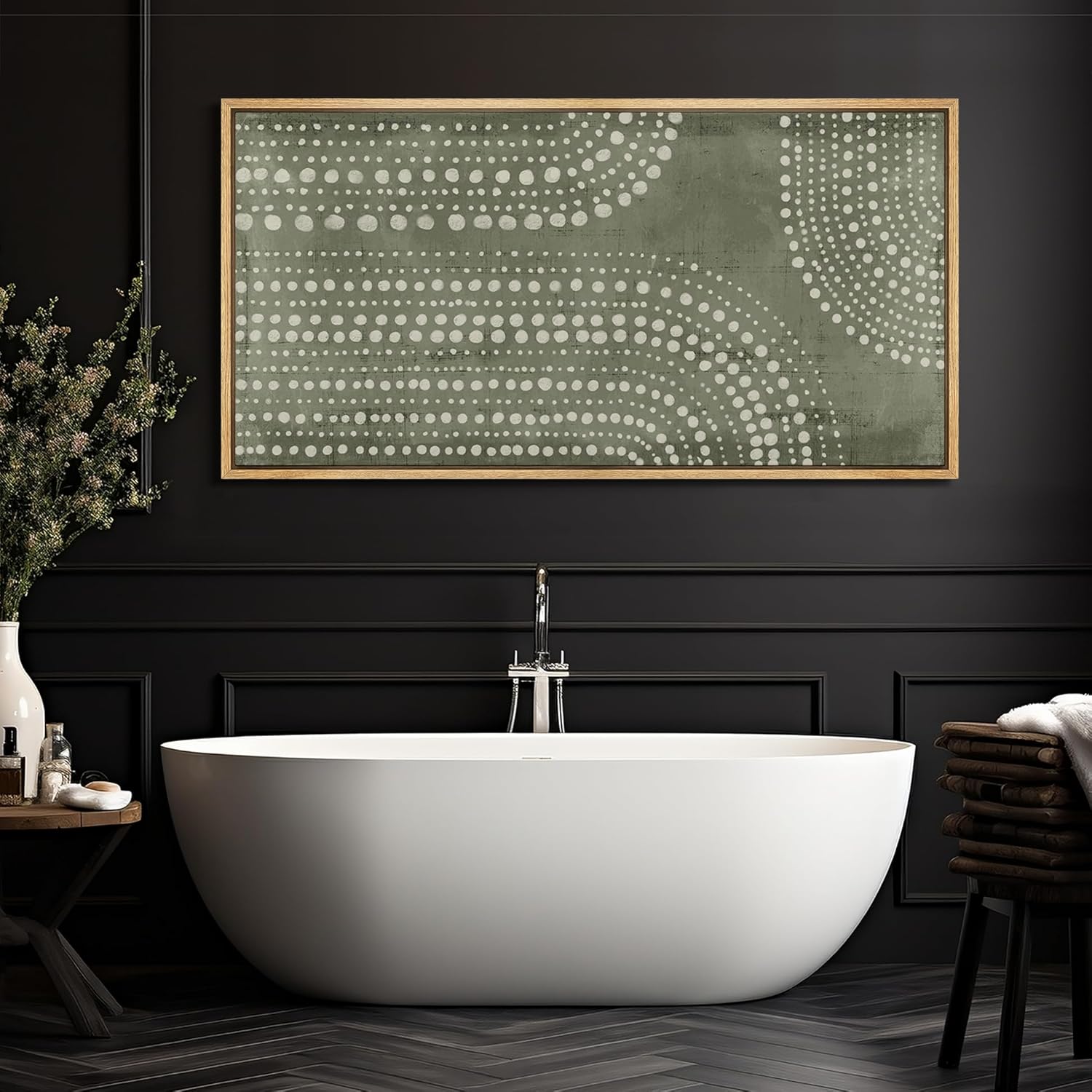MUDECOR Extra Large Framed Canvas Print Wall Art Abstract Dot Matrix Canvas Art in Olive Tones Antique Retro Fine Art Illustrations Decorative Colorful for Bedroom - 60"x30"