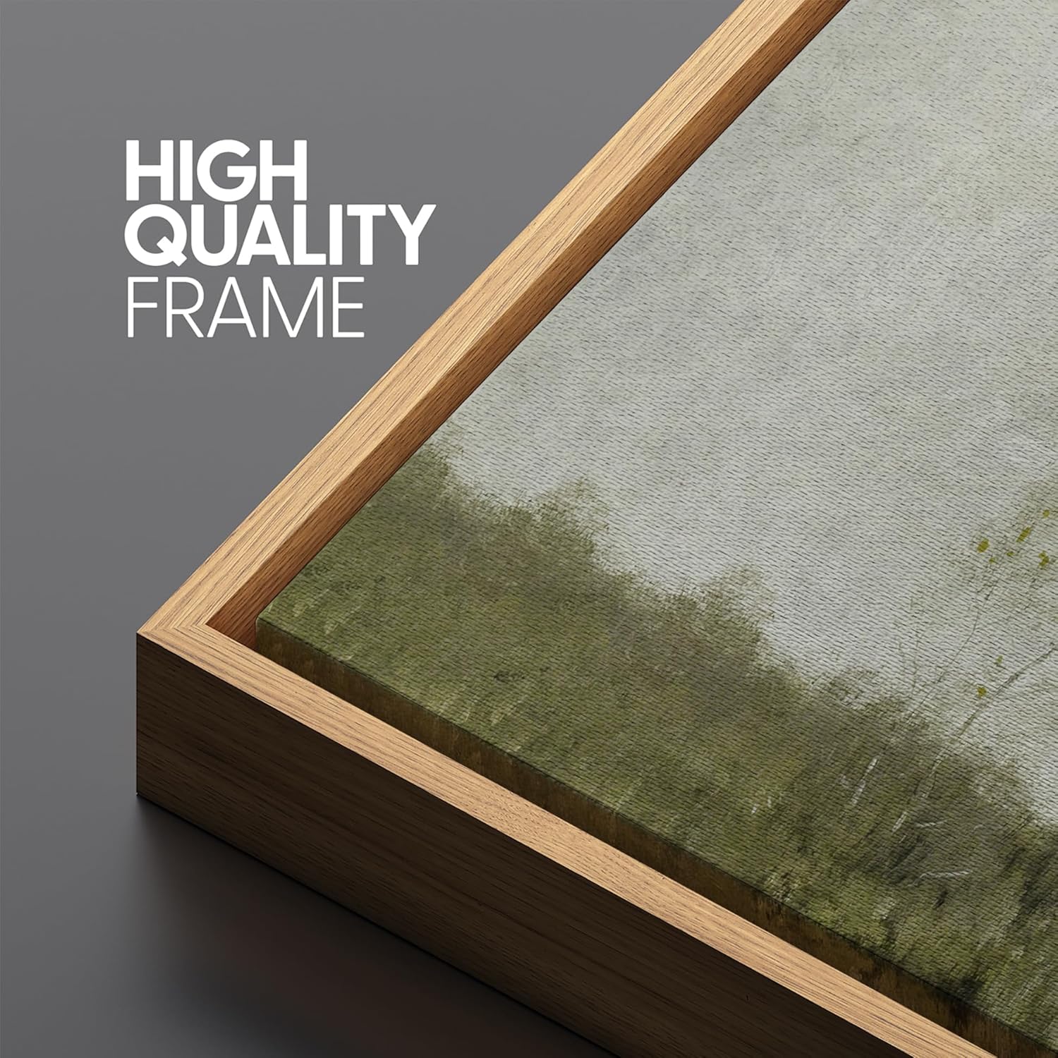 MUDECOR Large Framed Canvas Print Wall Art Soft Pastoral Landscape Wall Art with Trees Antique Retro Fine Art Illustrations Decorative Colorful for Bedroom - 60"x20"