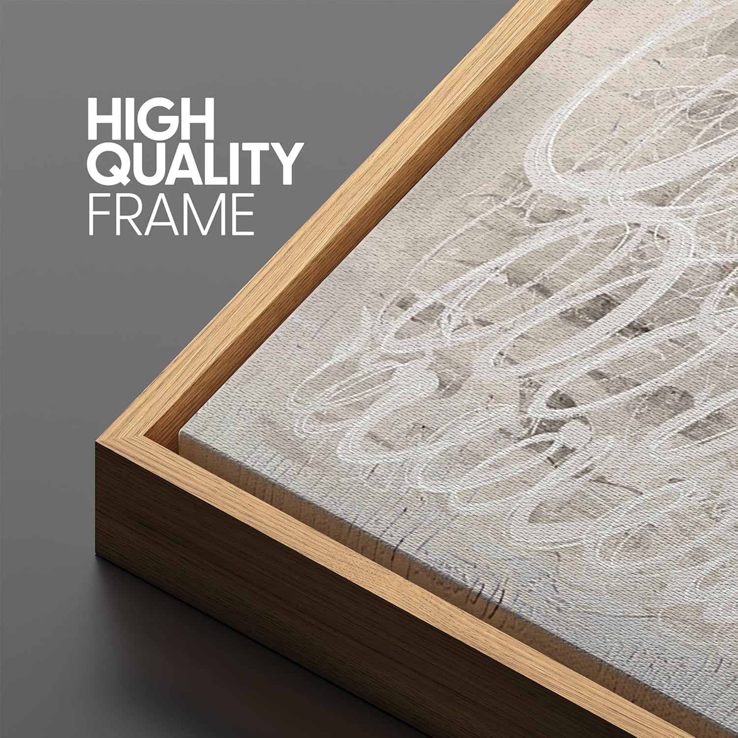 MUDECOR Extra Large Framed Canvas Print Wall Art White Abstract Calligraphy Antique Retro Fine Art Illustrations Decorative Colorful for Bedroom - 60"x30"