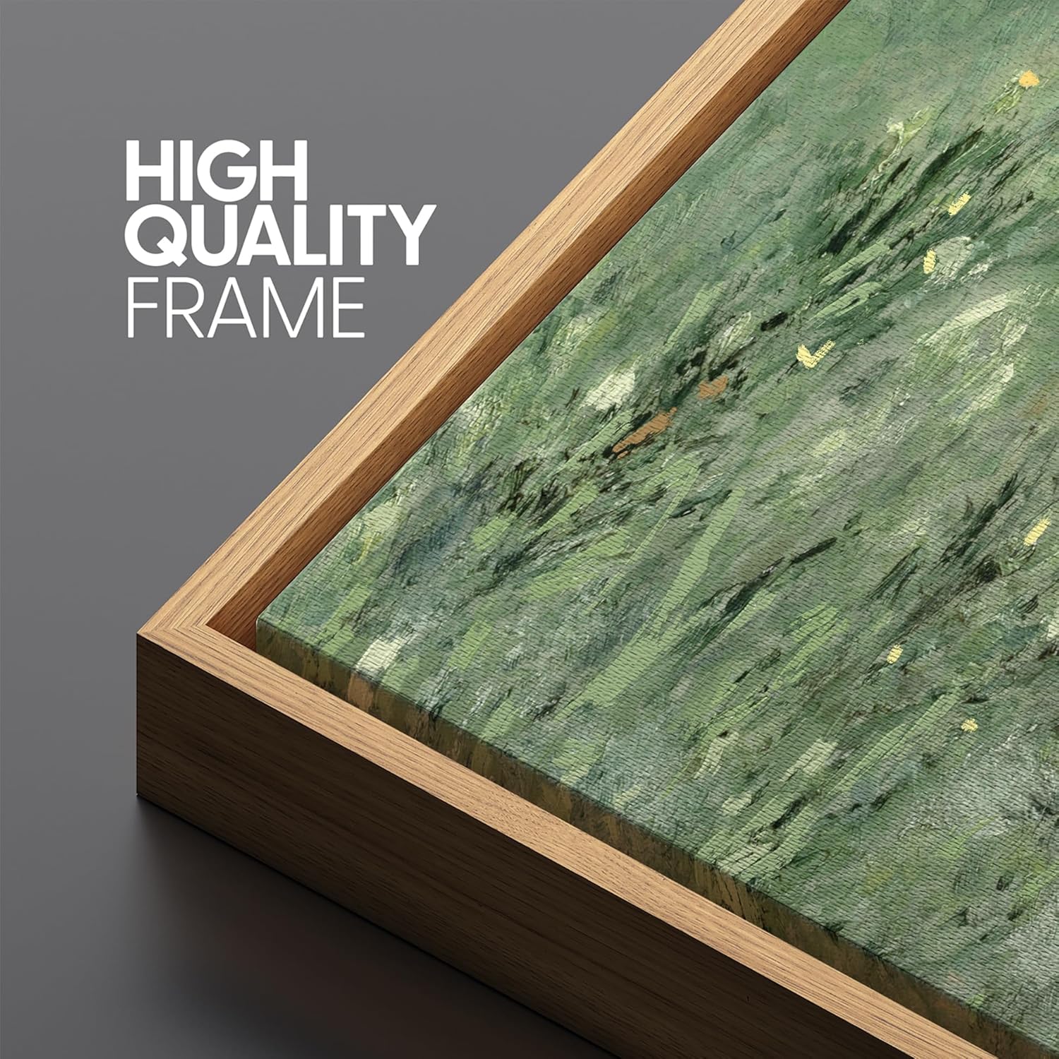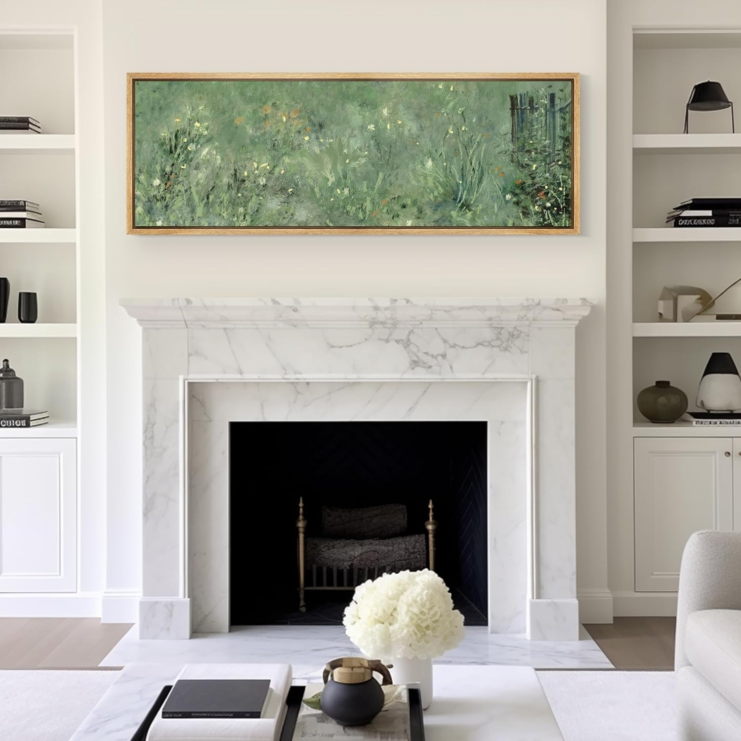 MUDECOR Large Framed Canvas Print Wall Art Meadow's Embrace Impressionist Wildflower Antique Retro Fine Art Illustrations Decorative Colorful for Bedroom - 60"x20"