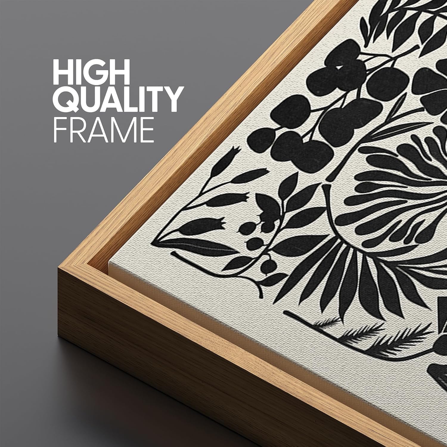 MUDECOR Extra Large Framed Canvas Print Wall Art Monochrome Botanicals Black and White Floral Illustrations Antique Retro Fine Art Illustrations Decorative Colorful for Bedroom - 60"x30"